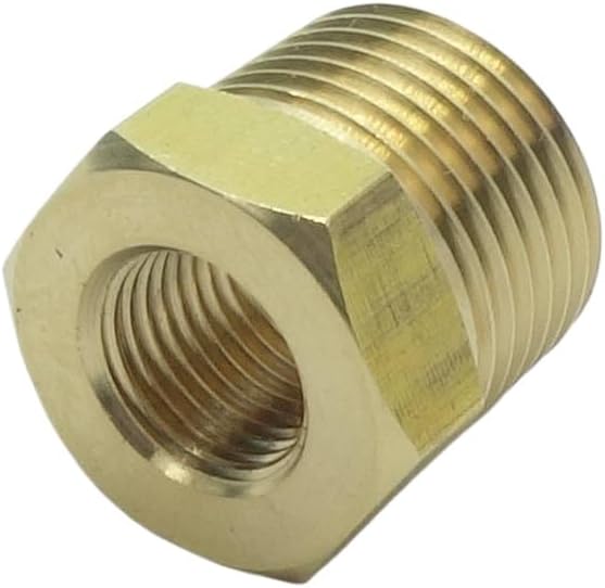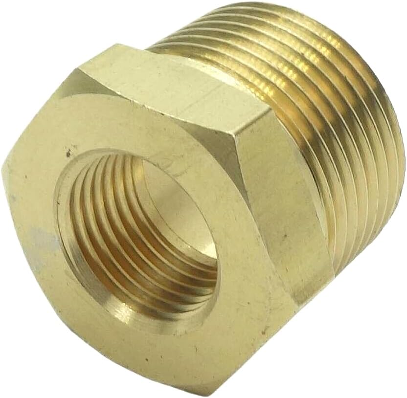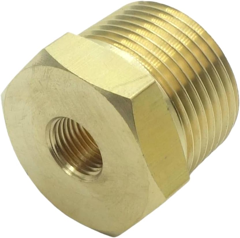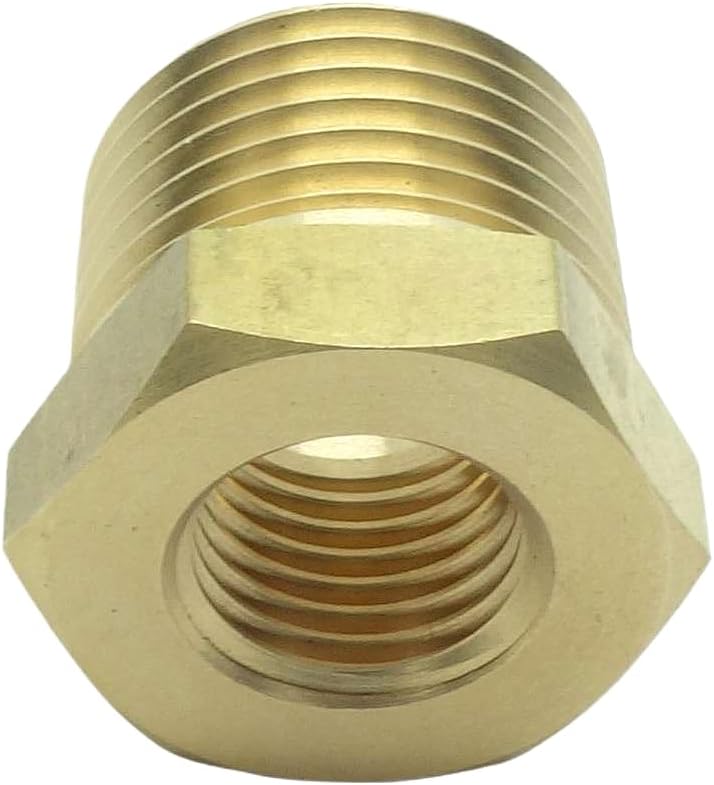 【Size】3/4" BSPT Male x 1/4" NPT Female.This hex bushing fitting connects two pipes with different diameters. 【Material】Brass for corrosion resistance, ductility at high temperatures, and low magnetic permeability. 【Max. Pressure and Working Temperature】1000 PSI WOG; Temperatures range from -65 to 250 Fahrenheit Degree 【Application】Widely used to connect shower, sink faucet, sprinkler, garden hose, water pipe, oil tube, air line, pipe, , pressure gauge temp sensor etc. 【Attention】Contains low-lead ; Not for potable/drinking water use.