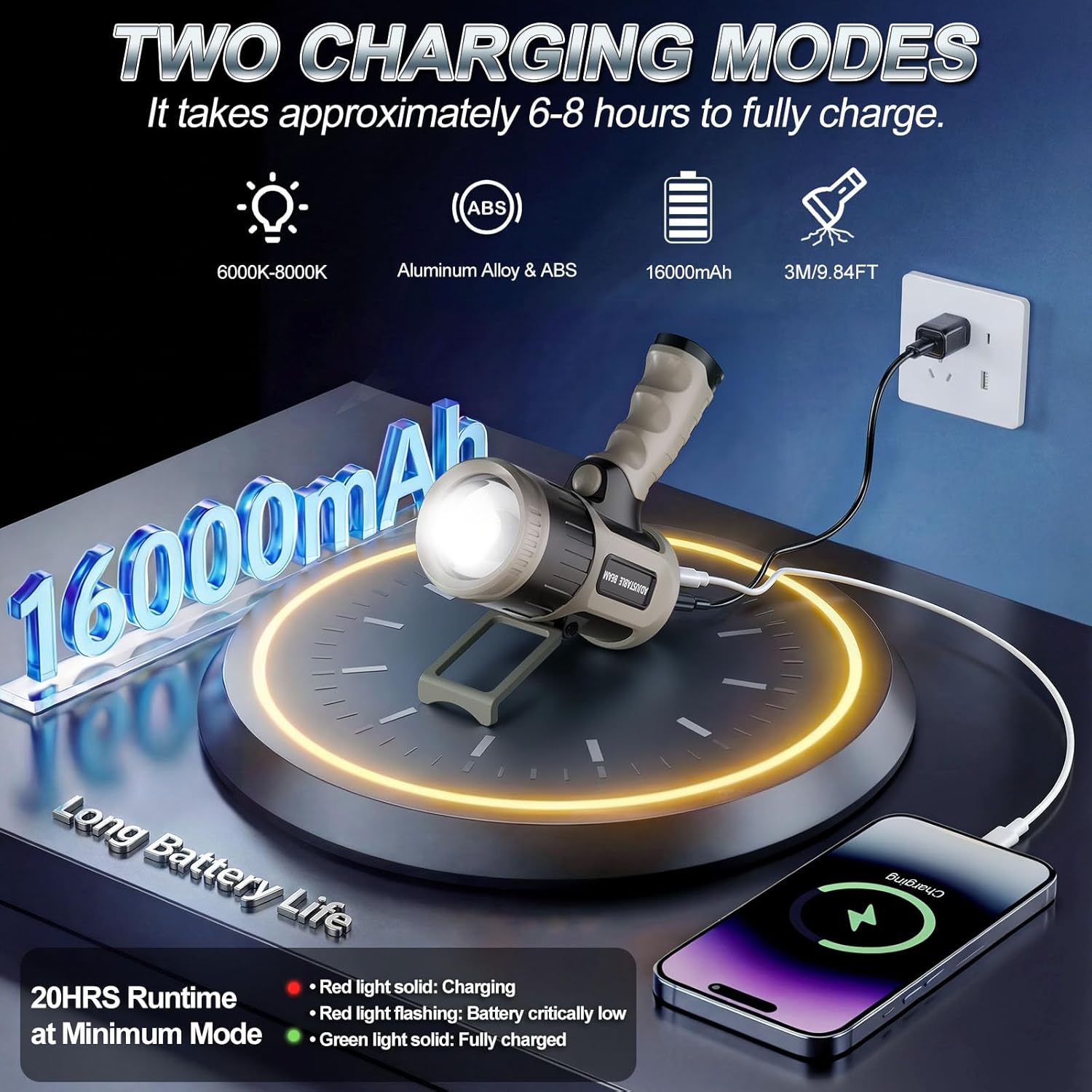 | Included Components | 1* 1-Meter USB Charging Cable, 1*Manual, 1*Spotlight Flashlight, 1*Wrist Strap |