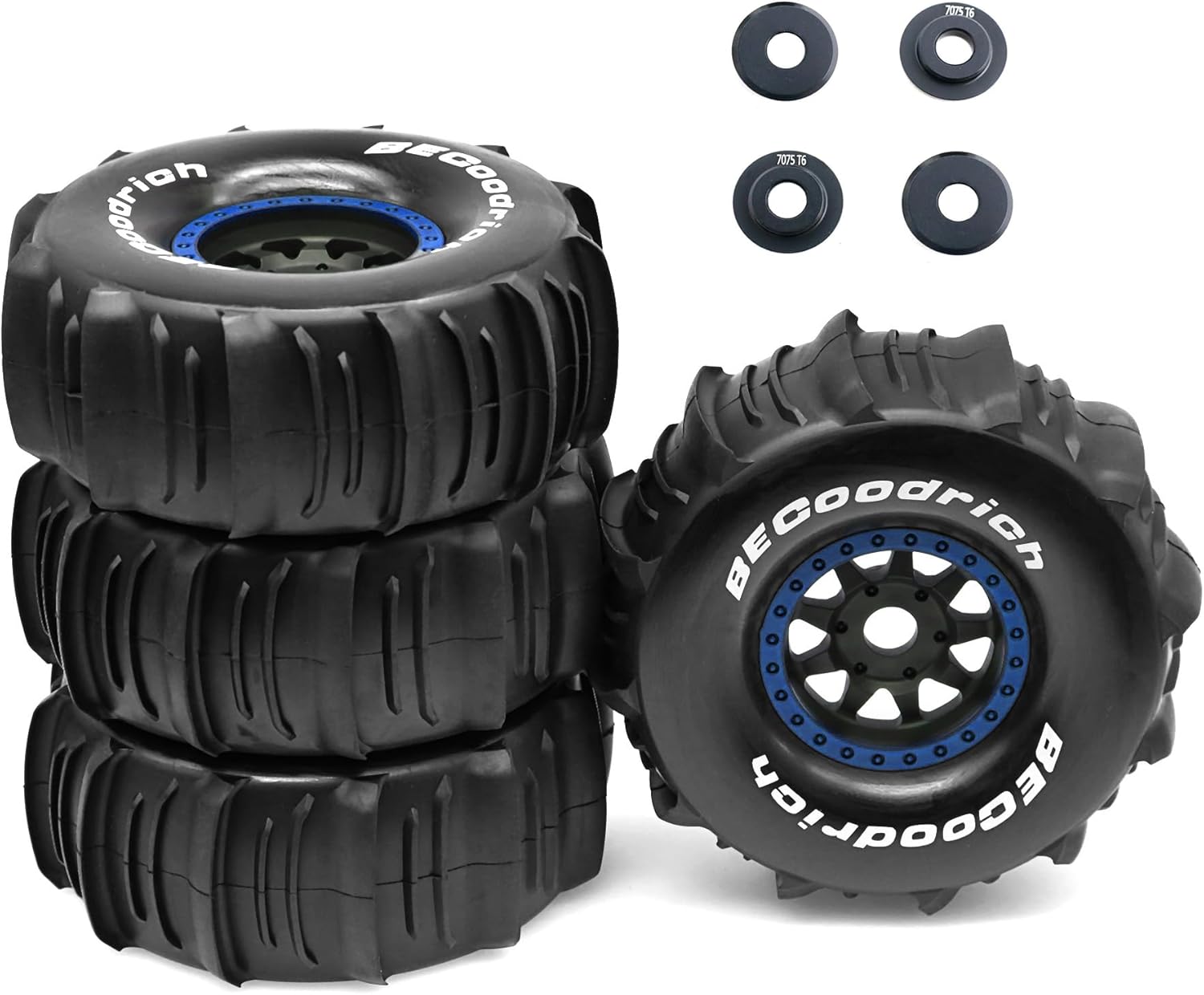 ๐ฅโ AdvantageThese RC Short Course Truck tires are designed to improve the vehicle's grip in soft ground, enhancing the performance and handling experience. Suitable for all 1/8 RC short haul trucks in a variety of terrains Can be mounted without damageThis tire offers unique advantages in loose terrain such as desert, beach, mud, hay, snow, etc.๐ฅโ Size:HEX: 17MMOD: 140 mm/(5.51 inches)Width: 55 mm/ (2.16 inches)Wheel inner diameter: 78 mm / (3.07 inches)๐ฅโ Packing list:4 tires and wheels (w/Foam Inserts Fit)4 UDR Wheel Spacers4 x Metal Spacers