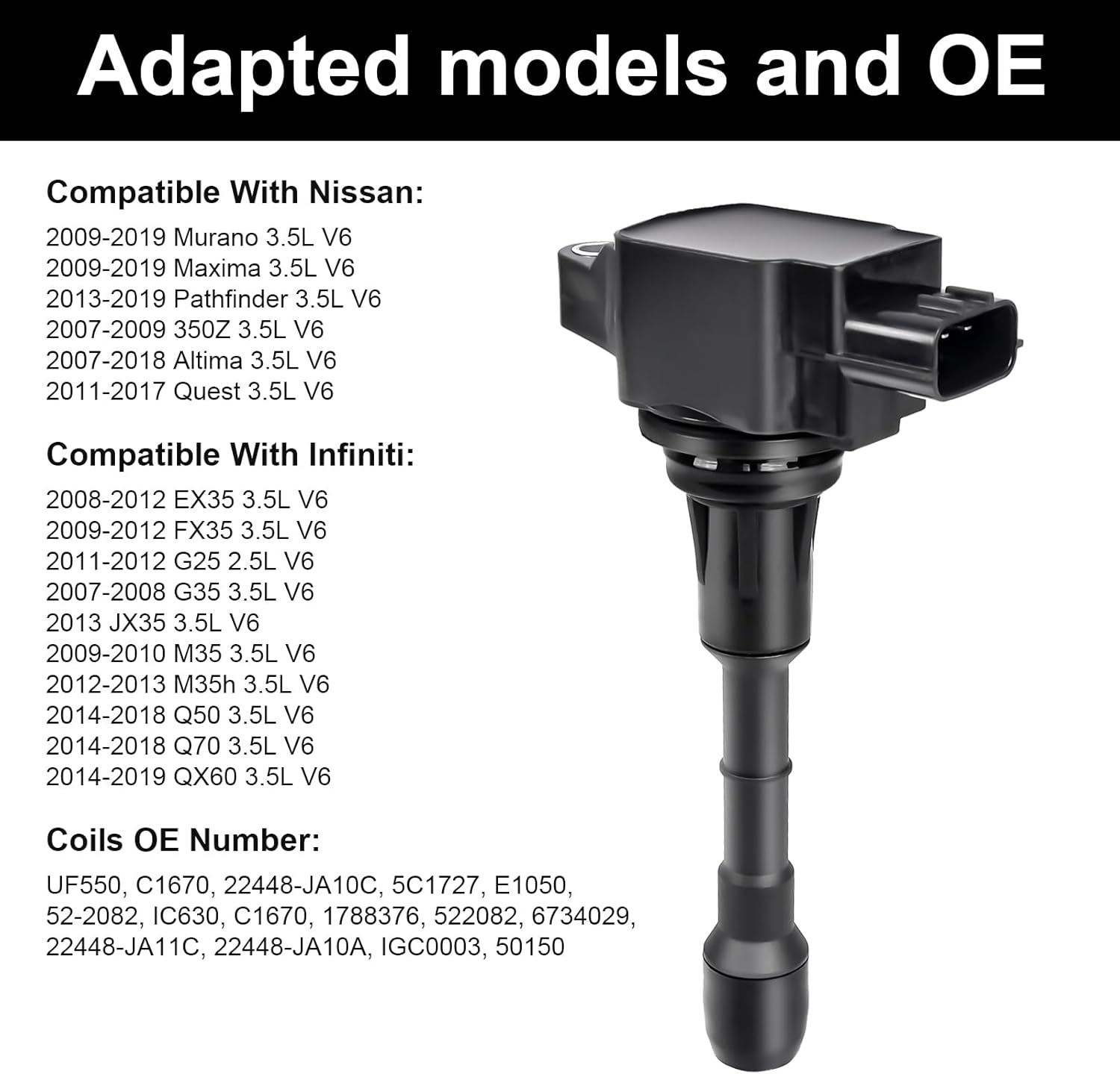 | Part Interchange Info | Replaces UF550, C1670, 22448-JA10C, 5C1727, E1050, 52-2082, IC630, C1670, 1788376, 522082, 6734029, IGC0003, 50150. Compatible with Nissan Altima, Maxima, Murano, Pathfinder, Quest, Infiniti EX35, FX35, G35, JX35, M35, Q50, QX60, and others. |