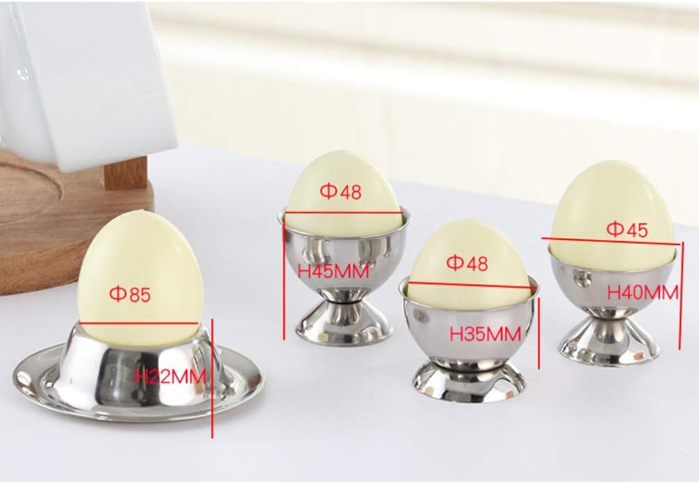 Feature- Stainless steel boiled eggs holder, long lasting, strong and , unbreakable- Stylish stainless steel egg holder offers a very modern design- Great for restaurant, tea napkin, kitchen, dining room and other places need to place eggs or eggs- Can hold boiled egg upright with this portable egg holders, bring your breakfast more fun. It also can hold Easter eggs for the holiday decoration- for treating you guests by this nice shape egg holder Specification:- Material: Stainless steel- Size: About 4. 5 x 4. 5 x 4cm. m Package Including 2 x Stainless Steel Egg Holder