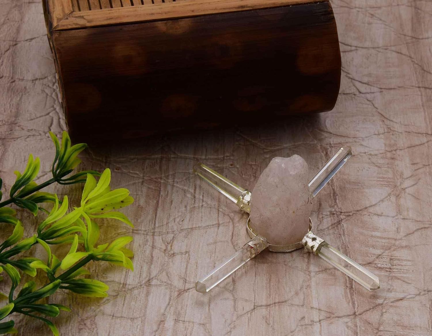* Beautiful 4 Crystal Points Rose Quartz Rough Generator.* Stone - Rose Quartz* Colour -Pink* P.S: We have mentioned approx size , size may vary in length and width.( These are natural stones, so the product you might receive can be slightly vary from the image.) Random 1 Gift Pouch