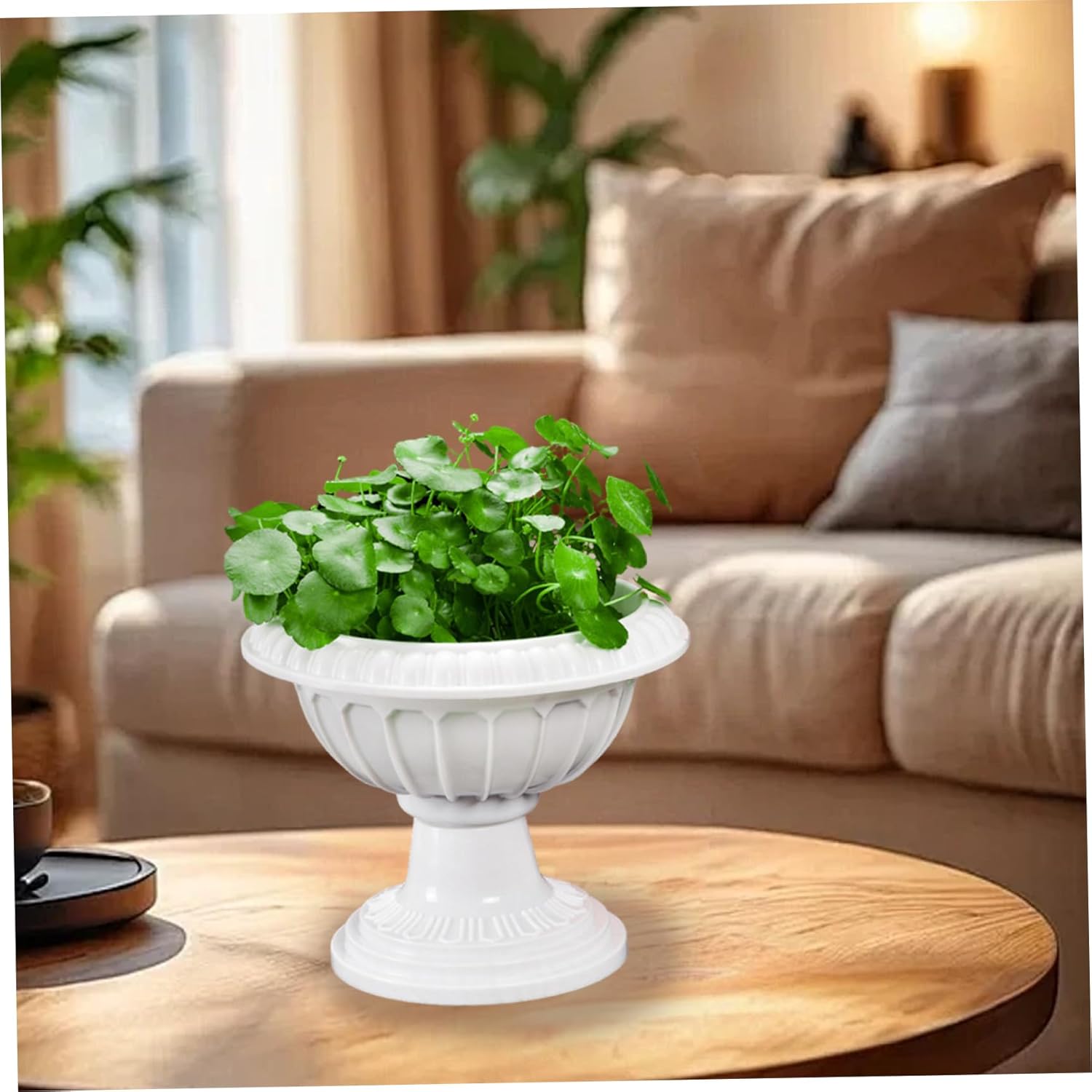 Description: Add a touch of classic elegance to your garden, balcony, or home with these 4Pcs Urn Planter. Measuring 8x10in, these lightweight and reliable plastic urn planter feature a timeless Roman-style design, making them perfect for indoor and outdoor use. Ideal for plant lovers, they are great for growing flowers, herbs, or small plants, and their neutral white color and versatile design complement any setting. Whether for a wedding ceremony, home décor, or garden landscaping, these eco-friendly and easy-to-clean planter a reliable and stylish solution for all your gardening needs. Features:. Urn Planter. -Color: White. -Material: Plastic. -Size: about 21*26cm/8.27*10.24inch. Note:Manual measurement, please allow slight errors on size.The colors may exist slight difference due to different screens. Package Including 4Pcs Urn Planter