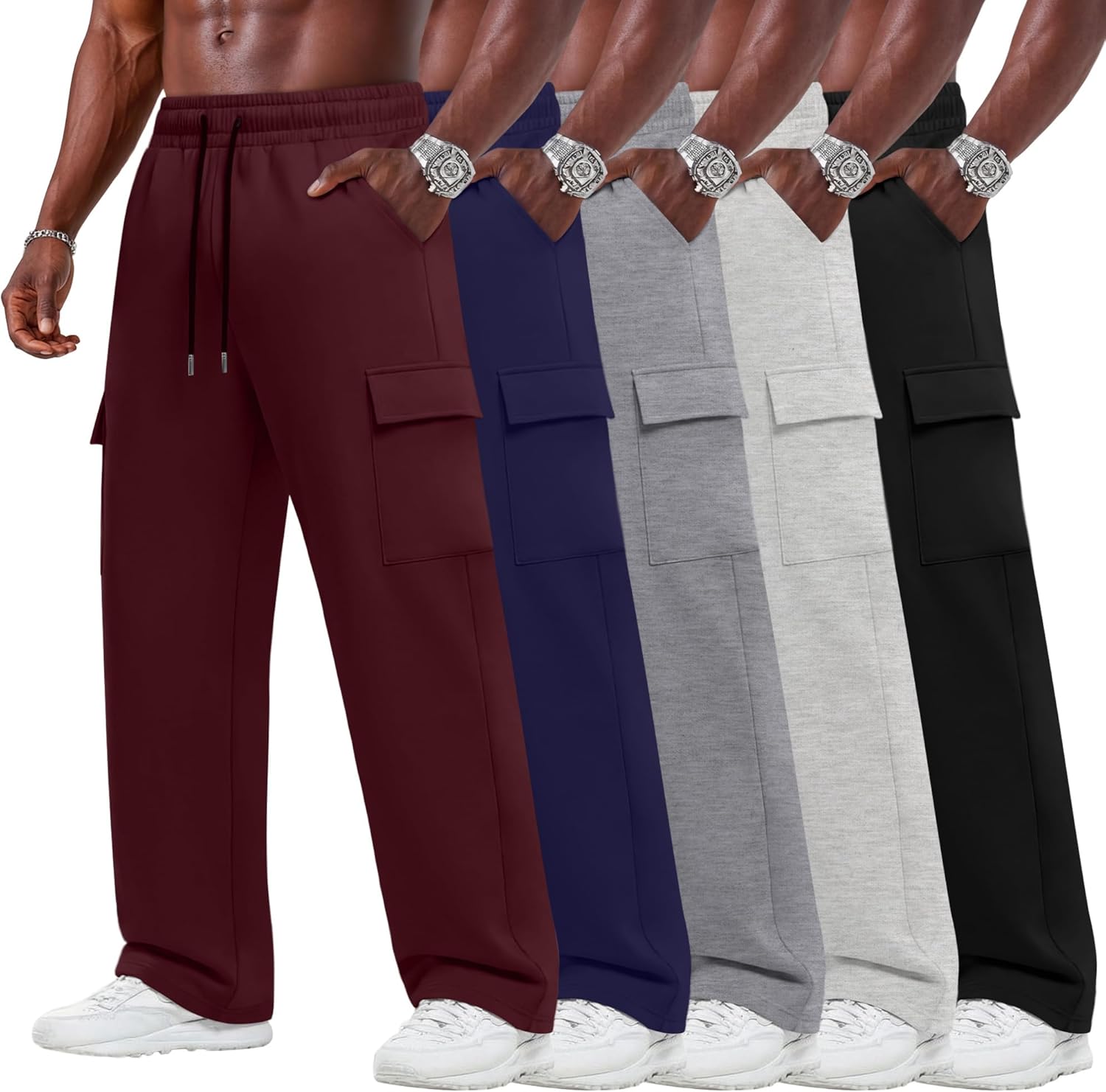 Features: These men's gym pants are made from stretch fabric and come in a variety of sizes to fit your body. These straight leg sweatpants for men are your thoughtful present choice, ideal for yourself or as a birthday, anniversary, or holiday present for your friends. Specifications: Material: 95% Polyester, 5% Spandex Package includes: 5 x Men's sweatpants Notes: Manual measurement, please allow slight errors in size. The color may have a slight difference due to different screen displays