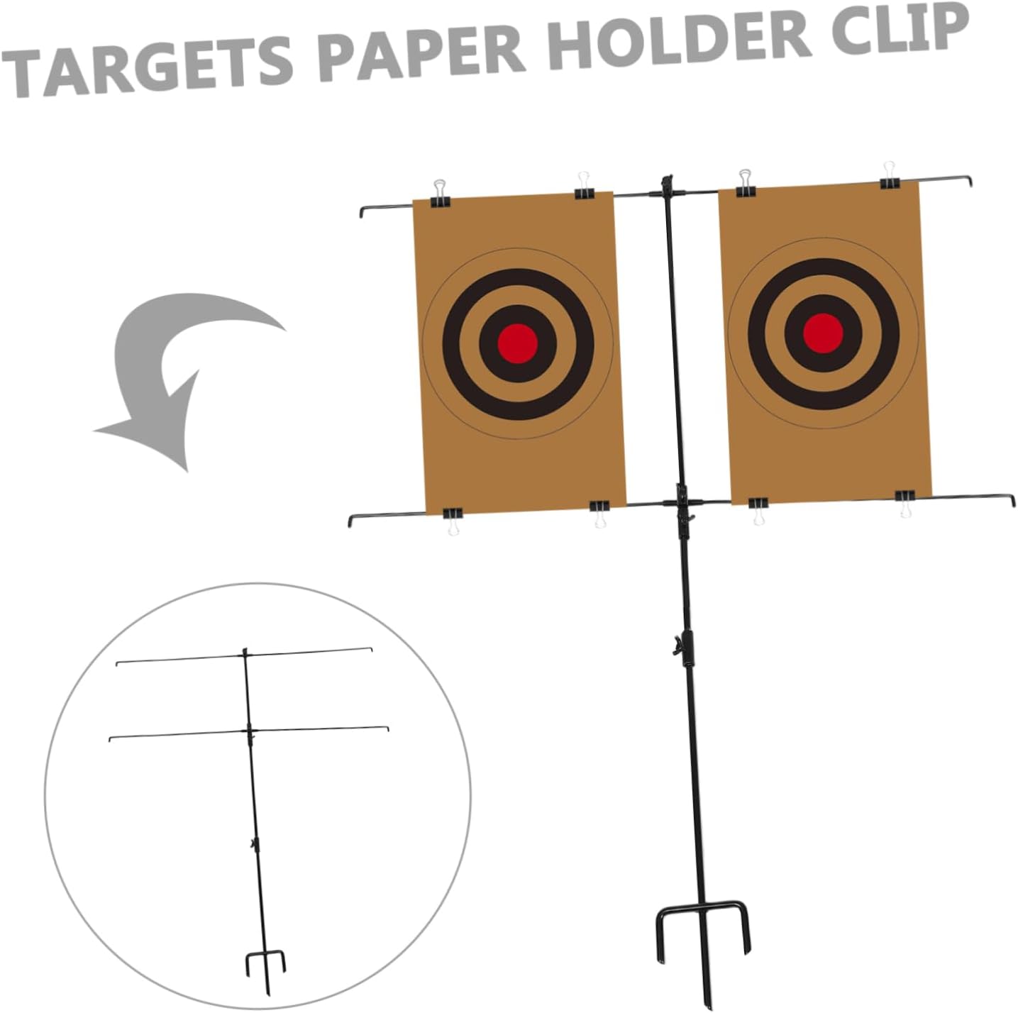 Package Include One target paper holder with 8 clips Features -Enhanced durability: constructed with a thicker and more iron structure, this stand is easy to assemble and disassemble, ensuring use target stand -Adjustable angles and heights: the stand offers adjustable angles and heights to meet different preferences, providing a tailored experience bb target -Material:Iron, Carbon Steel paper targets -Compact and portable: its lightweight and compact design ensures easy portability and storage, making it ideal for shooters on the accessories -Size:105.00X86.50X19.80cm/41.27X33.99X7.78in targets -Adaptable target stand: this adjustable metal target stand is designed to accommodate various targets, making it Ideal for different practices bb target -Color:Black bb targets -Effortless design: the userfriendly design allows for installation and removal, simplifying your setup metal targets for Goods Descriptionskeet thrower Its adjustable design allows for easy to fit different target sizes and angles. targets metal The durable metal construction ensures performance, making it suitable for use in various environments. targets The universal target paper clip adjustable metal target paper stand offers a reliable and convenient for your practice