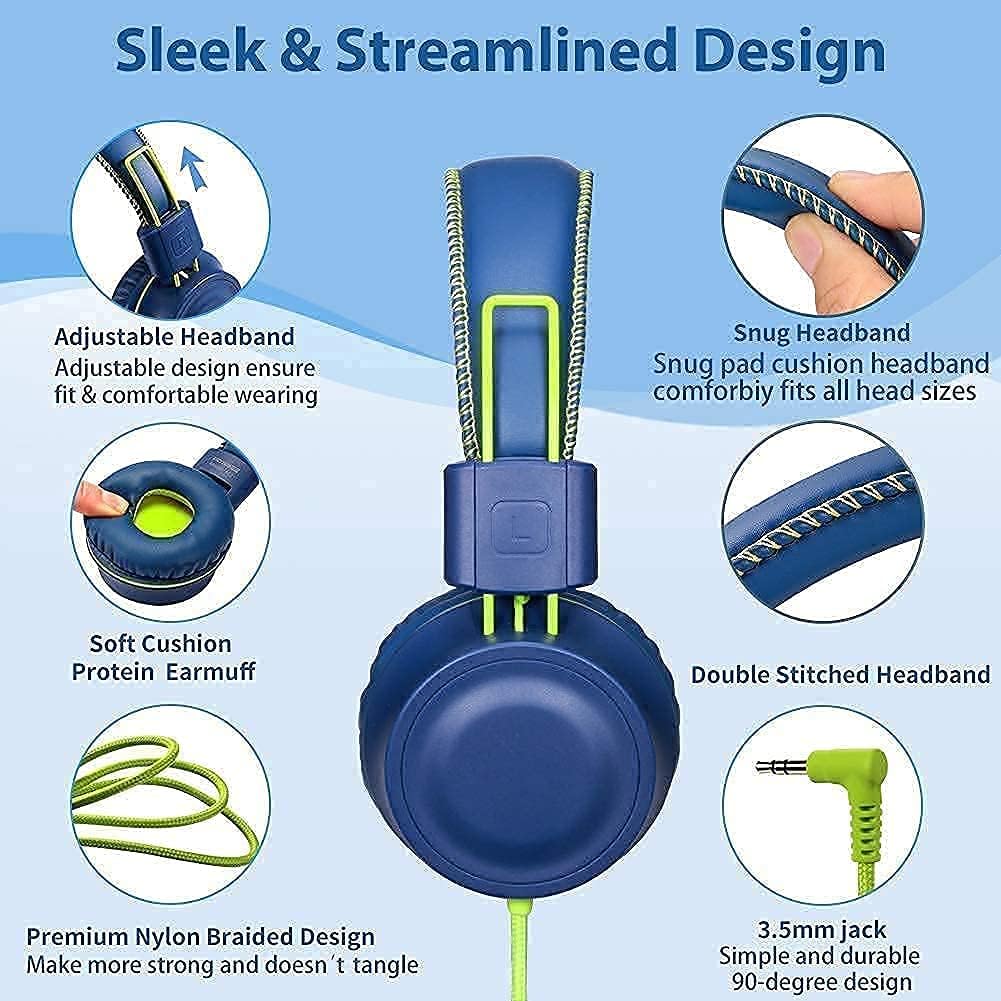 Snug Headband:with snug pad cushion headband comforbly fits all head sizesExcellent Sound:Stereo bass headband,40mm drivers deliver rich and clean audio,it is compatible with all smartphones and tablets with 3.5mm jack devices.Foldable & Compact:the foldable design can make a lot of space for travel and easily to carry wherever you goSoft Cushion Protein Earmuff:it is very soft and comfortable to wear,what's more, it can block out ambient noise.Ajustable and Lightweight: Ensure perfect fit and lightweight design for long lasting comfort,perfect for music, movies.games and educationg time.