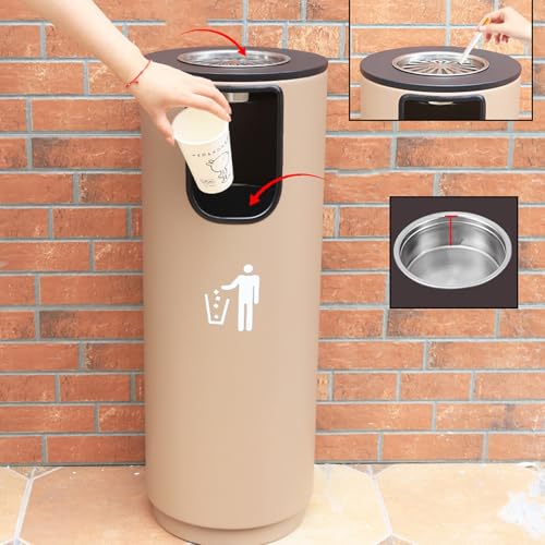 Enhance your waste management with our versatile cylindrical trash can with lid, available in both small and large sizes to meet the diverse needs of families, businesses, and public spaces. Its stylish hidden trash bag design elevates your decor while ensuring a neat appearance. The lid features a user-friendly open and close mechanism, providing easy access for quick disposal. Crafted from durable metal and coated with a high-quality finish, this trash can is designed to withstand the rigors of both indoor and outdoor environments. The detachable inner and outer barrels simplify the cleaning process, while the double handle design on the inner barrel makes waste management effortless. Ideal for high-traffic areas such as hotels, schools, and tourist attractions, this large-capacity outdoor trash can effectively combines functionality with aesthetic appeal. Its robust construction allows it to handle heavy usage, making it perfect for campuses, seaside promenades, and other bustling locations. Whether placed on an outdoor terrace, in a villa courtyard, or within a commercial center, this trash can is a practical choice for any setting. We are dedicated to providing excellent after-sales service. Please note that slight color variations may occur due to differences in monitor settings. Your feedback is invaluable, and we encourage you to reach out with any questions or suggestions. Our dedicated team is always here to assist you, ensuring your satisfaction with our product.