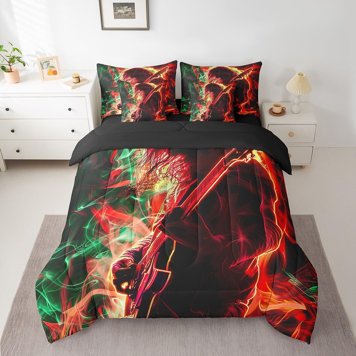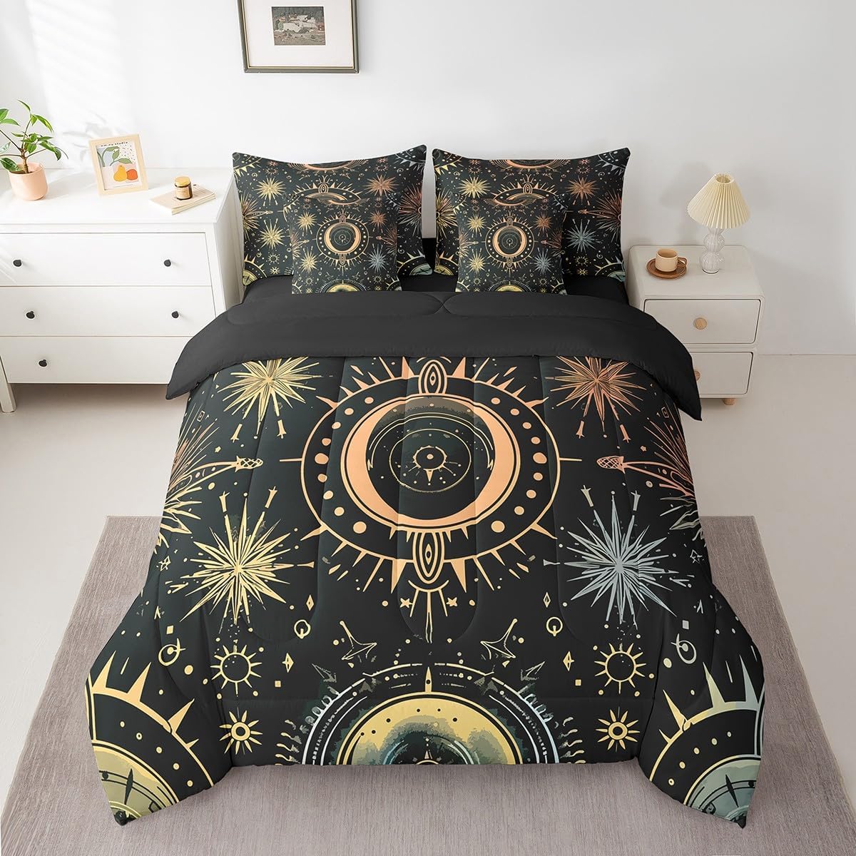 Welcome to Home Store We have specialized in home textile for many years,We sincerely hope that our products can give your room a brand new look Size Information Twin size : 1 Comforter 68"x90", 1x Fitted Sheet 39"x75"x16",1x Flat Sheet 96"x66", 2x Pillowcase 20"x30" and 2 Pillow Cover 18"x18" Full size : 1 Comforter: 79"x90", 1x Fitted Sheet 54"x75"x16",1x Flat Sheet 96"x66", 2x Pillowcase 20"x30" and 2 Pillow Cover 18"x18" Queen size : 1 Comforter: 90"x90", 1x Fitted Sheet 60''x80''x16",1x Flat Sheet 102''x90", 2x Pillowcase 20''x30'' and 2 Pillow Cover 18"x18" King size : 1 Comforter: 104"x90", 1x Fitted Sheet 78''x80''x16",1x Flat Sheet 106''x90", 2x Pillowcase 20''x35'' and 2 Pillow Cover 18"x18" Feature : We have products with different element patterns,which can easily decorate the theme room you want Our bedding is Soft and lightweight,but it can keep you warm for all season Our Comforter Pattern Printing are very definition Occasion and Presents our bedding set is not only great for your Bedroom or Guest Room,but also good for your Rv Bunks,it's also a great Present for your kids,families,friends,boyfriend,girlfriend,husband and wife Personalized As a manufacturer of digital printed home textiles, we follow current trends,Some of our products : Duvet cover,Comforter Set, Sheet Set,Blanket,Window Curtains,Shower Curtains,can be customized with names or Something you want to say to someone Our Wish We sincerely hope you'll love our bed set