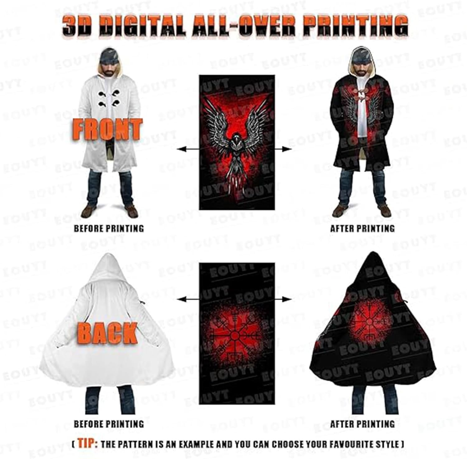 【VIKING DESIGN】If you love Scandinavian history and mythology, then this cool viking design is just for you! Grab this design to feed your viking soul and blood, in order to get in the Valhalla!Features:This amazing printed hooded jacket can be matched with most clothes;The Horn buckle is beautiful and generous, sliding smoothly, durable and easy to put on and take off;Windproof large hood, lock head warm;Large kangaroo pocket designed to put a lot of things or warm hands;The cuffs and hem line are close to the body, providing all-round protection against cold winds and keeping their shape for a long time.Size S: Length:35.4″ / 90 cm;Bust: 52.7″ / 134 cm;Sleeve Length:22.8″ /58cm;Size M: Length:36.2″ / 92 cm;Bust: 55.1″ / 140 cm;Sleeve Length:23.2″ /59cm;Size L: Length:37.1″ / 94 cm;Bust: 57.4″ / 146 cm;Sleeve Length:23.6″ /60cm;Size XL: Length:37.7″ / 96 cm;Bust: 59.4″ / 152 cm;Sleeve Length:24.1″ /61cm;Size XXL: Length:38.5″ / 98 cm;Bust: 62.2″ / 158 cm;Sleeve Length:24.4″ /62cm;Size 3XL: Length:39.3″ / 100 cm;Bust: 64.9″ / 164 cm;Sleeve Length:24.8″ /63cm;Size 4XL: Length:40.1″ / 102 cm;Bust: 66.9″ / 170 cm;Sleeve Length:25.1″ /64cm;Size 5XL: Length:40.9″ / 104 cm;Bust: 68.5″ / 176 cm;Sleeve Length:25.5″ /65cm;Packing list: 1 * Viking winter CoatsWashing Instructions: Wash in cold water, hand/machine wash without bleach.US Size: S/M/L/XL/XXL/3XL/4XL/5XL Please refer to the size chart we provide carefully before purchasing to avoid inconvenience to you.Our store provides a large number of Viking costumes, you can buy 2 or more pieces for your family and friends, which will help you save unnecessary logistics costs.