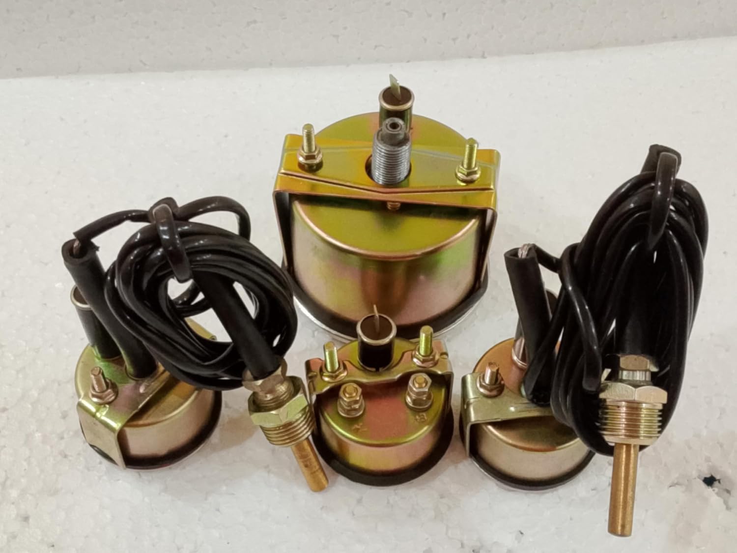Replacement After Market New Tachometer with Gauges Kit 1) Tachometer = 85 mm hole fitment mechanical 2) Temp Gauge = 28 inch lead 3) Trans oil temp Gauge = 72" lead 4 ) Ampere Gauge = 52 mm hole fitment