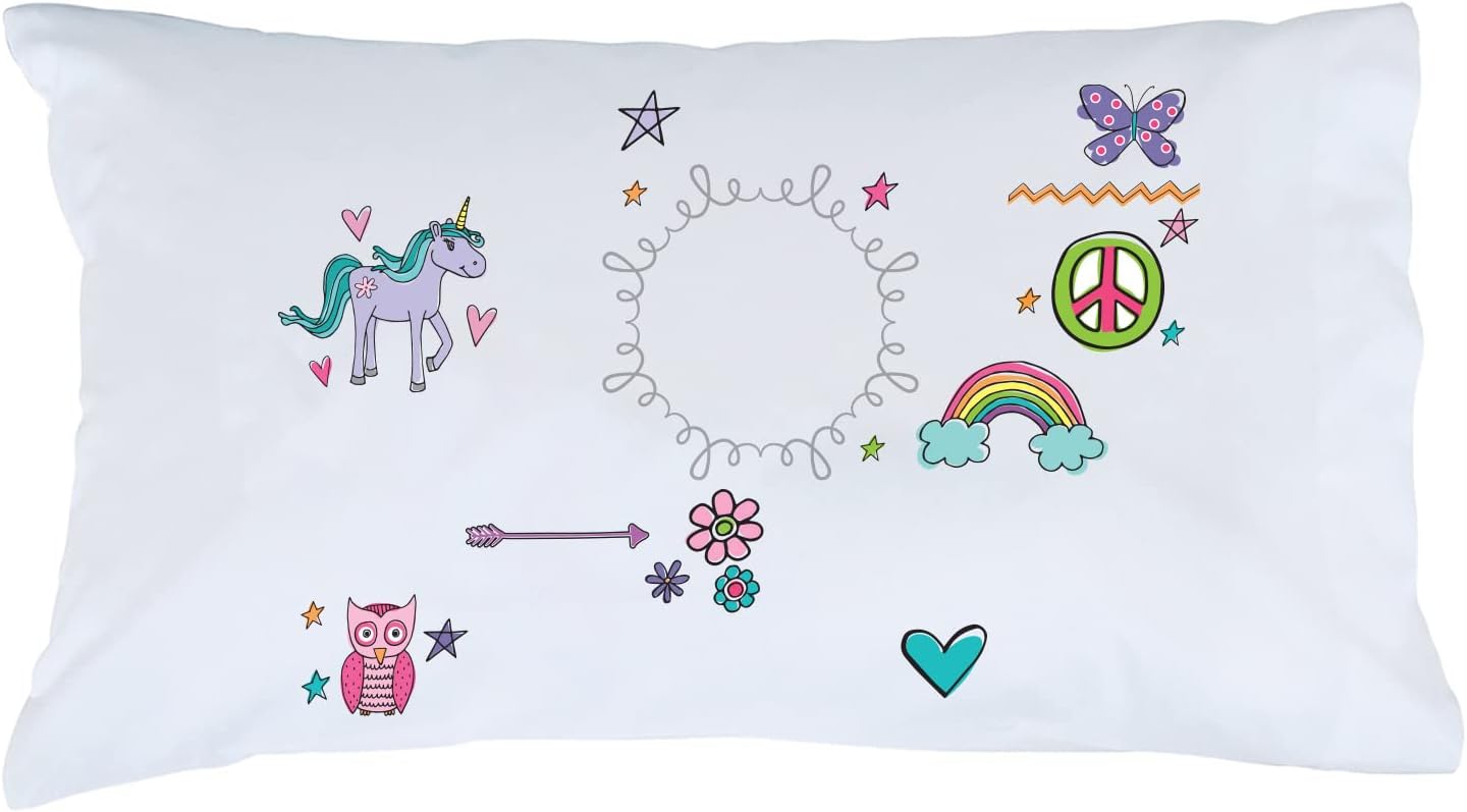 Add signature flair to her room with a personalized pillowcase! She'll love the purple butterfly, magical unicorn and colorful rainbow on this unique design. Featuring a collection of fun and girly details, this beautiful bedroom accent is made complete when you personalize with her name and initial. The Queen (standard) sized pillowcase measures 20-inches by 31-inches, is made from 100% polyester, is machine washable, and will keep its bright color for years of use. The design is featured on a single side of the white pillowcase. Pillow not included. Personalized Planet is a leading online retailer specializing in personalized gifts for special occasions, holidays, and celebrations. Our wide selection of customized productions makes excellent gift ideas for birthdays, Christmas, Mother's Day, Father's Day, Grandparent gifts, and more. We also carry a large selection of licensed children's products for popular brands such as Paw Patrol, Peppa Pig, Wild Kratts, JoJo Siwa, Monster Jam, and others. Our officially licensed products are available in products such as kids' beach towels, pillowcases, apparel, backpacks, room décor, and more. Personalized Planet provides the opportunity to give a truly unique and memorable gift!