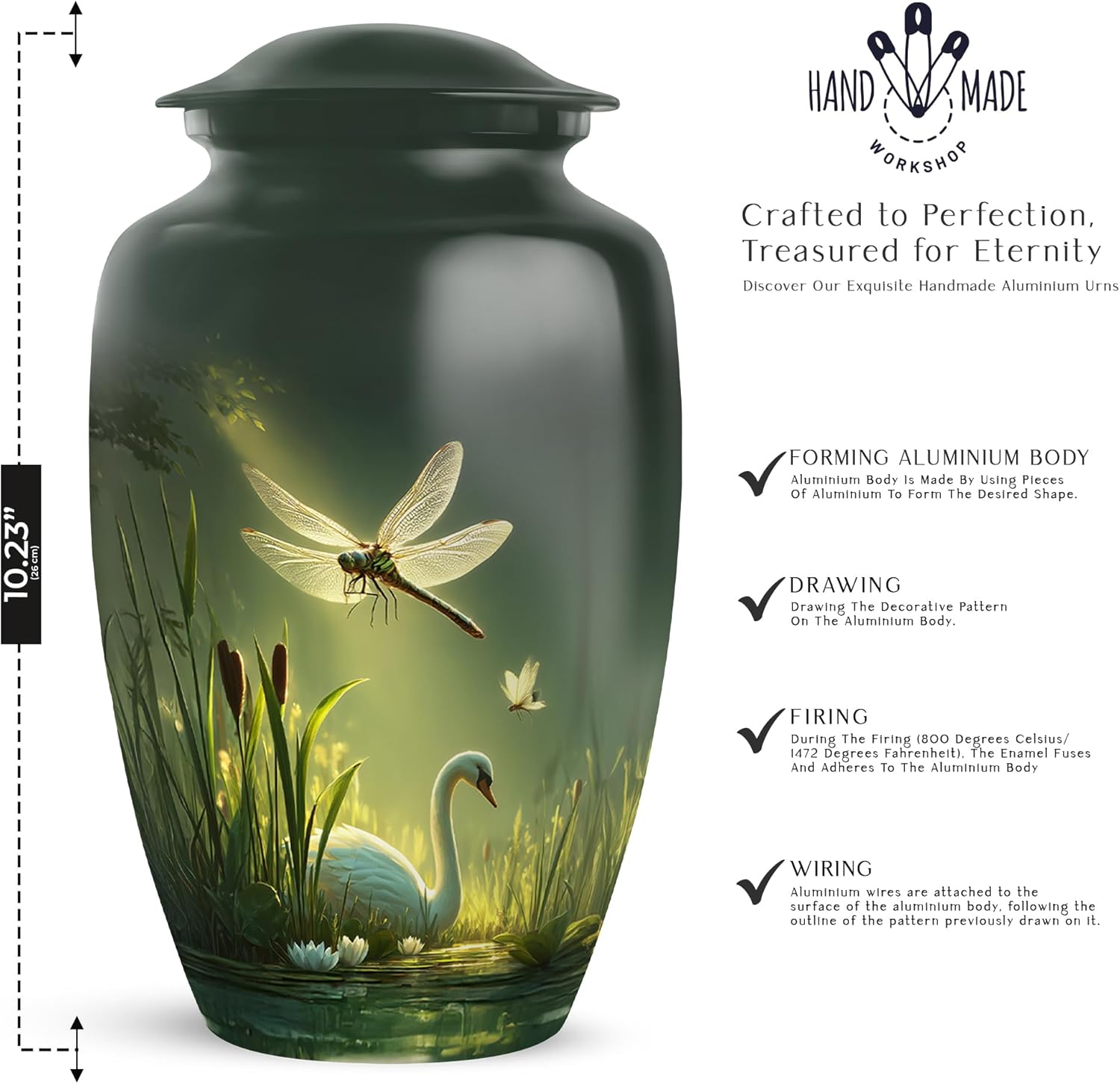 This Unique design urn for human ashes is designed to honor the memory of an adult loved one. With a large capacity of 200 cubic inches, it offers ample space to hold the ashes of an adult individual, making it perfect for families seeking a dignified resting place. Measuring 10 inches in height, this memorial urn is a meaningful tribute that complements any home or space. Its elegant, decorative design adds a personal touch while serving as a lasting remembrance. Ideal as a funeral urn or cremation urn for human ashes, it provides both beauty and functionality. This urn is crafted to provide a respectful final resting place, whether displayed in a home or placed in a columbarium. Perfect for those looking for a tasteful and thoughtful way to memorialize their loved one, this urn helps keep cherished memories close. The decorative details and thoughtful craftsmanship make it a beautiful tribute to a life well-lived.