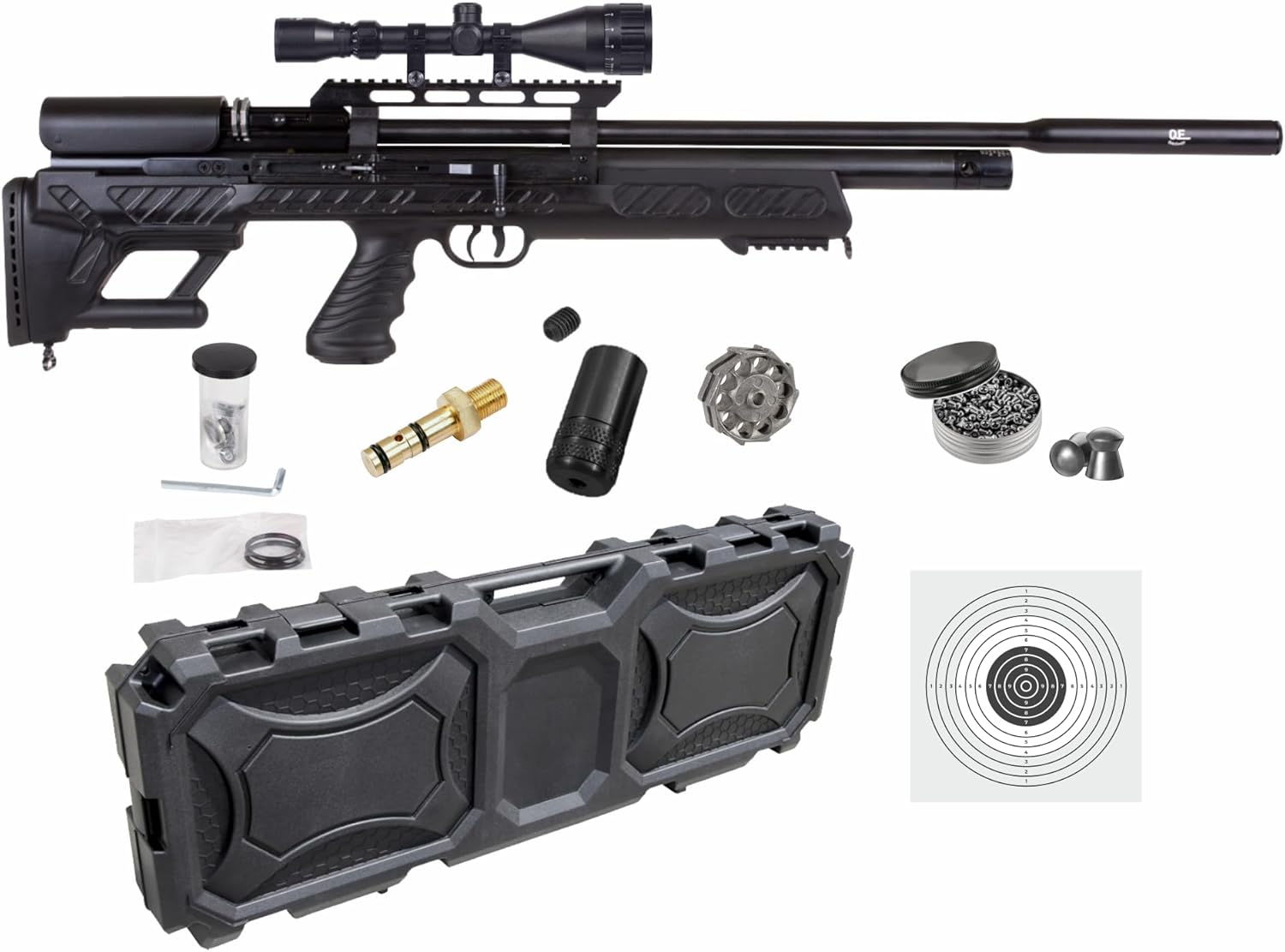 | Included Components | Air Rifle, Air cylinder discharging cap, Paper Targets, Pellets, Scope |