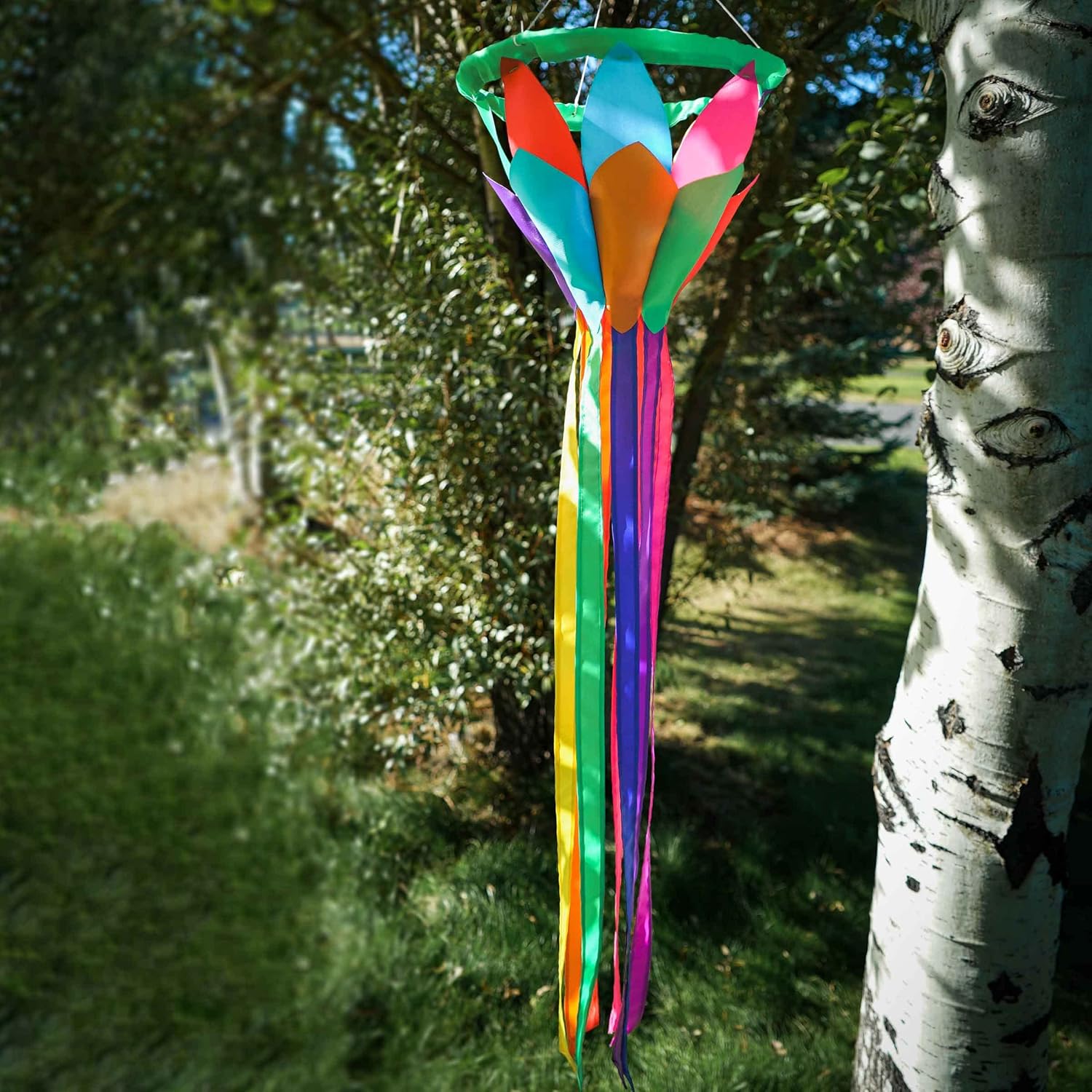 • This classic In the Breeze design is back and features an 11" polycarbonate plastic hoop holding up the COLORFUL cut petals and maintains the windsock's shape. Hanging down 38" from hoop to tails, these Lotus Windsocks are a perfect fit!
