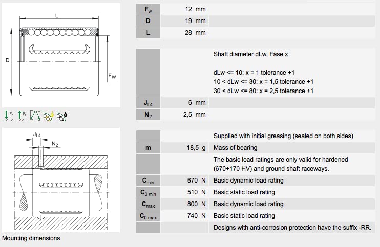 INA Linear drawn cup ball bearing (INA-KH12-PP)