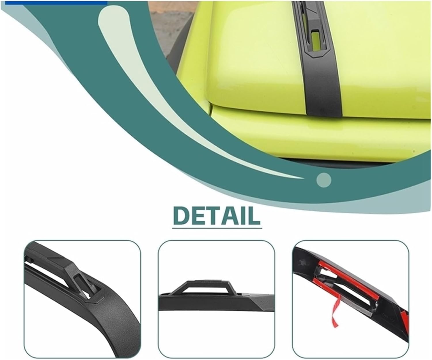 JIDIXIAN Compatible with Suzuki Jimny 3/5 Doors 2019 Up Car Exterior Engine Hood Decoration CoverSpecification1. Car Model: Compatible with Suzuki Jimny 3 Doors (2 Doors) / 5 Doors(4 doors) 2019 2020 2021 2022 2023 2024 2025.2. Color: Black3. Package Include: 2 pcs/set4. Aerodynamic Boost:Arch shape optimizes airflow.5. Easy InstallationThe installation can be quickly completed in 3 steps: Clean the surface Peel off the film Attach and press Compatible with 1 minute,Do not wash your car within 48 hours.Welcome to our shop! Massive high-quality auto parts spot straight hair, accurately adapt to multiple models, quality escort and peace of mind!