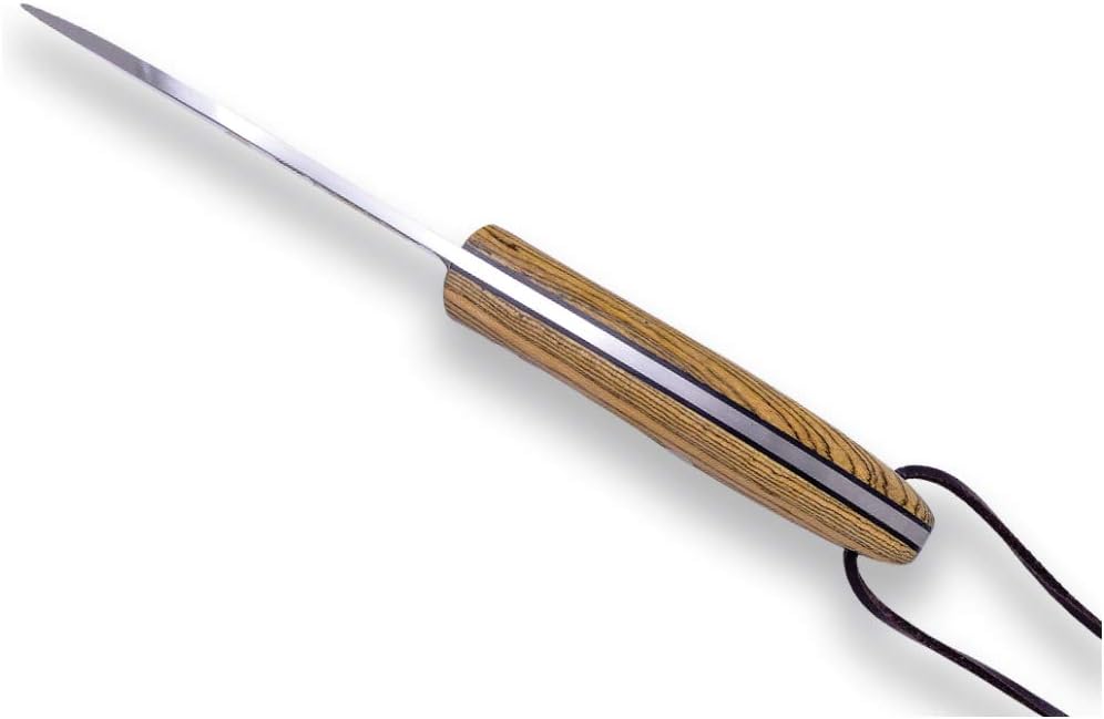 The sporting folding knives and knives of the Joker factory are all manufactured in Albacete - Spain in a semi-artisanal way since more than 30 years ago taking care of the details and uniting traditional craftsmanship with the most modern technologies Joker manufactures each of its pieces meticulously by hand, being a Spanish manufacturer leader in its sector, having one of the largest ranges of cutlery of all kinds, such as Arab knives, survival knives, bushcraft, hunting knives, etcSpecifications: Full Tang Hunting Knife Brand: Joker Model: Canadiense Reference: CB114 Made and Designed in Spain (Albacete) Steel: SANDVIK 14C28N Hardness: 58 - 60 HRC Handle: Bocote wood with black linners Blade Point: Spear Point Satin Finish blade Blade Length: 4.13 inches Blade Width: 1.18 inches Blade Thickness: 3,7 mm Blade Weight: 175 grams Sheath Weight: 105 grams Total Weight: 280 grams Sheath: Brown Leather Brand Box