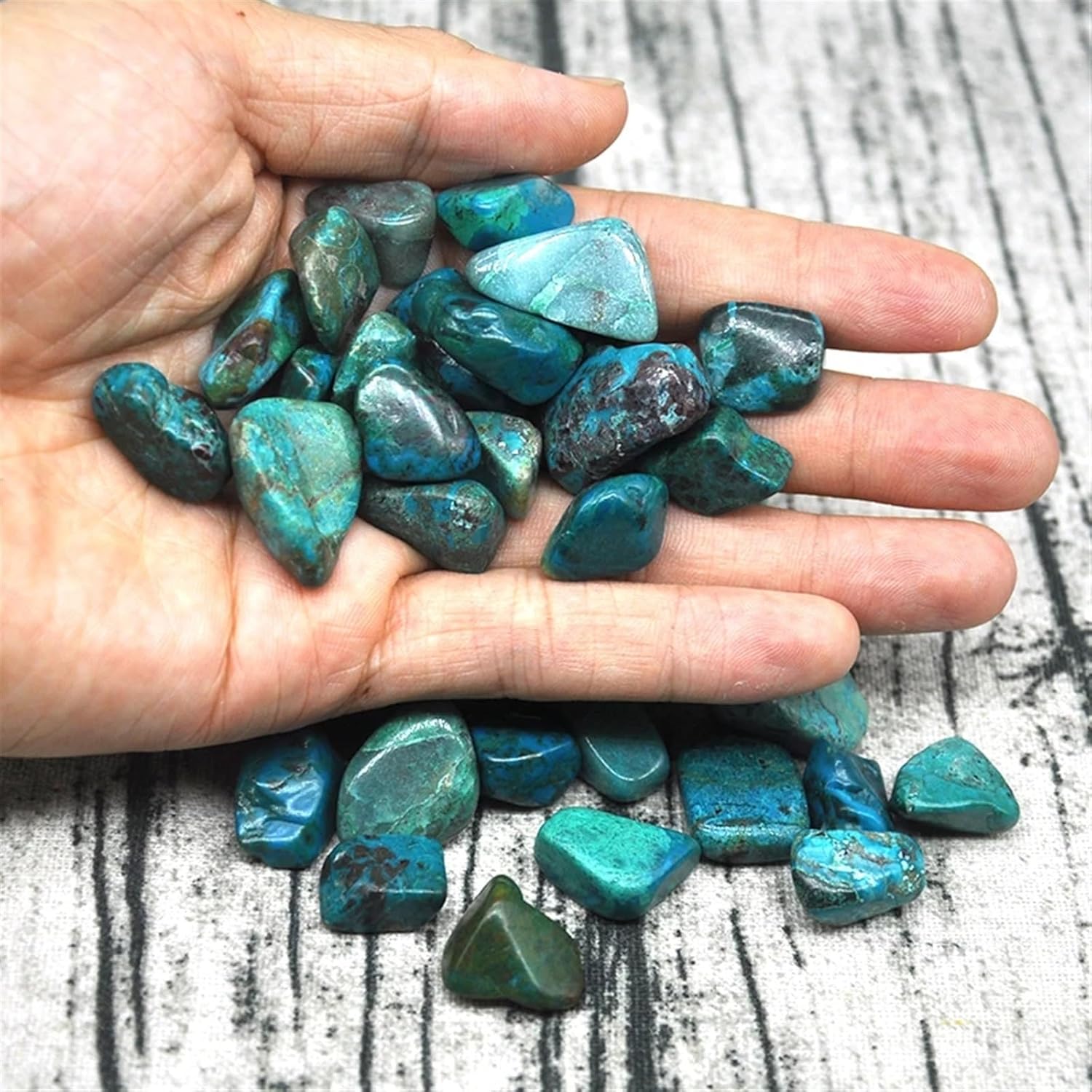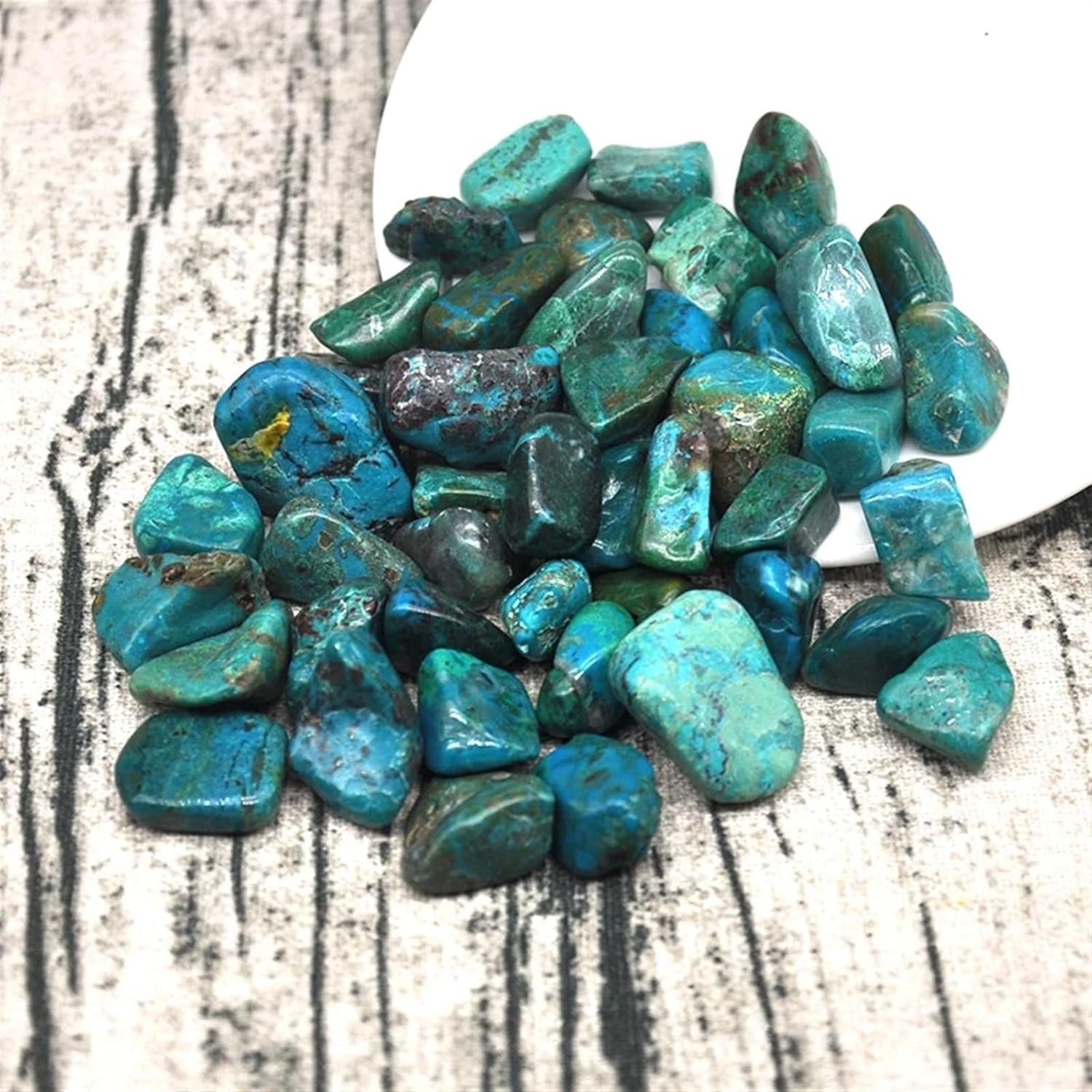 Due to light and screen differences, the product color may be slightly different from the picture, thank you for your understanding.Please allow 1-3mm error due to manual measurement.Quantity:50g/100g/200g/500gMaterial:ChrysocollaSize:5-30 mm/pcWeight: 3-20 g/pc Stone Shape:Irregular