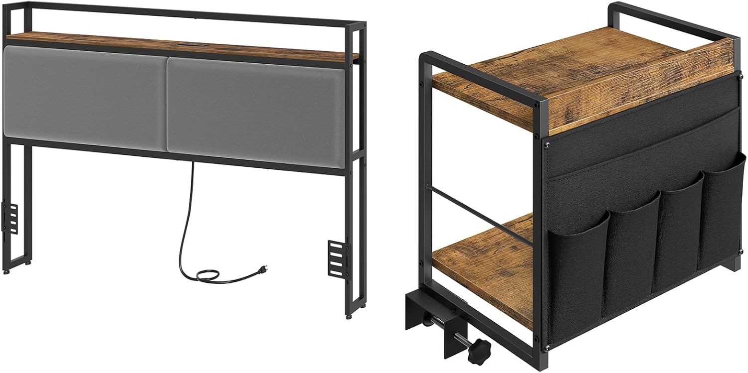 YATINEY King Size Headboard Only, Upholstered King Headboard with Charging Station, Head Board with Open Storage, Height Adjustable, 2-Tier Bedside Shelf, Bed Tray Shelf with Fabric Pockets Storage, Clip-on Loft & Bunk Bed Shelf for College, Bedshelfie for Sofa, Bedroom, Apartment, BH14UBR-ET20BR