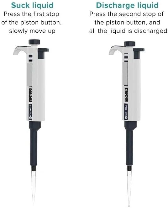 Description:Press the first stop of the piston button,slowly move up.Press the second stop of the piston button,and all the liquid is discharged.Wide range and adjustable Adjustable pipette can pipette liquid within a certainrange.Rotate the range adjustment knob to adjust the range.