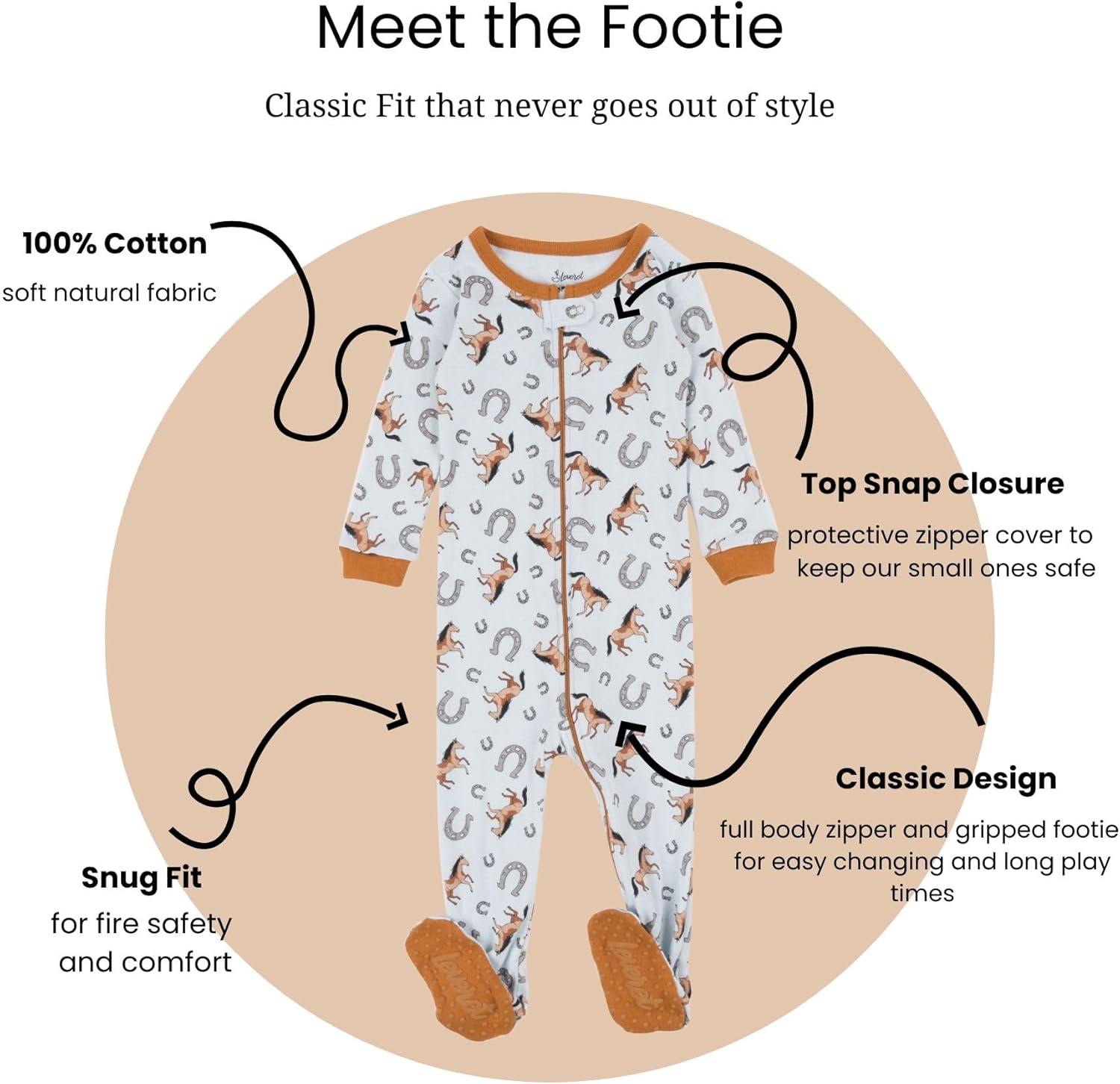 Our classic striped pattern is always a hit! The Baby Footed Pink Striped Pajamas come in bright pink hues like Berry Chime and Pink Red. Made from 100% ultra-soft cotton without flame-retardant chemicals. They should fit snugly for fire safety but please order one size up if you prefer a looser fit. To minimize natural shrinking and to keep your stripes bright, wash your pajamas inside out and in cold water. The full-body zipper and button closure make middle-of-the-night changes easy! Your baby will always play safe in our anti-slip gripped footies. These essential prints are a great addition to your baby's wardrobe. Our comfy tagless design is great for sleep, play, and even seasonal layering! Leveret pajamas come in many patterns and colors, so it's easy for the whole family to enjoy together.