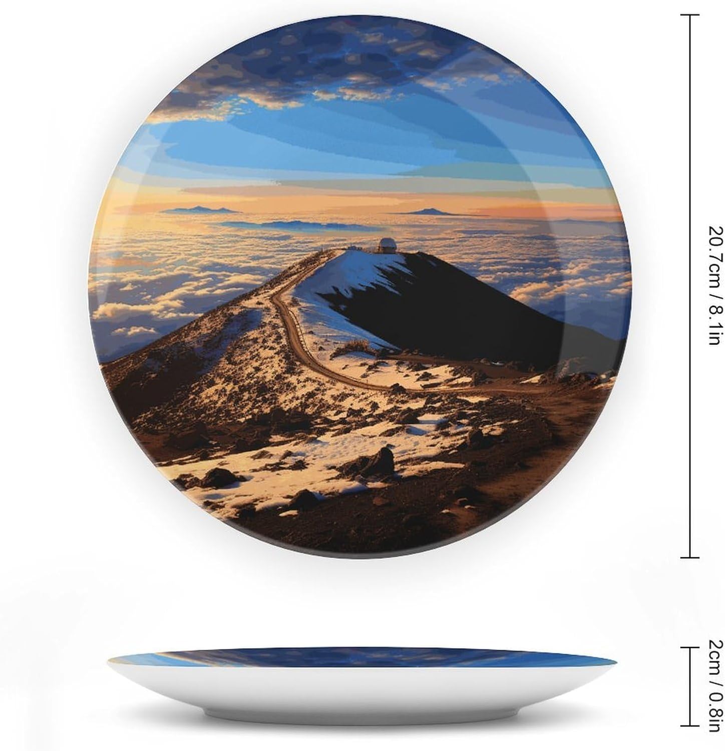 Our versatile ceramic Mauna Kea Summit Sunset plates are made of smooth ceramic material. The lightweight bone china plates can be easily placed anywhere you like, showcasing their decorative charm.This bone china dessert plate is available in four sizes: 6 inches, 7 inches, 8 inches, and 10 inches, making it an ideal choice for display items.Personalized decorative plates, perfect for displaying handicrafts, are an ideal choice for home décor. This vertical ceramic plate makes a wonderful gift for housewarmings, anniversaries, weddings, birthdays, Thanksgiving, New Year's, or any holiday.This French country-style ceramic plate is suitable for decorating or using in living rooms, offices, hallways, dining rooms, entrances, hotels, holiday homes, and other places.