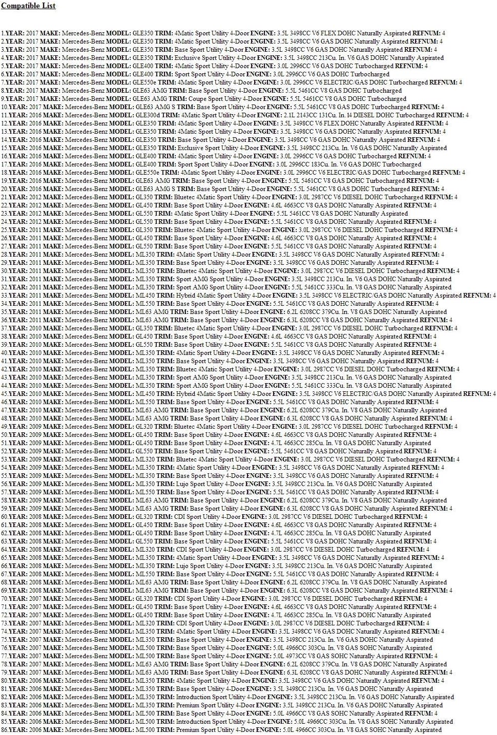 | Model | GLE350 GLE400 GLE550e GLE63 AMG GLE63 AM |