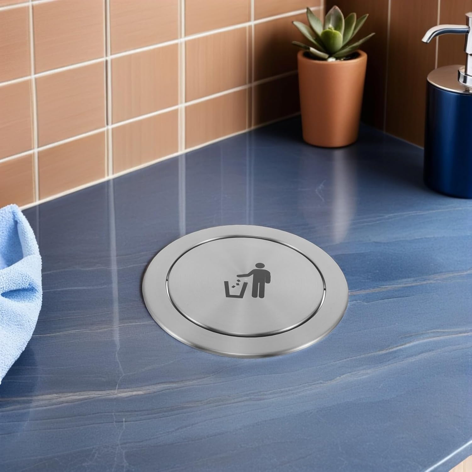 Package Include 1 x Waste Chute Lid Features -Swing top efficiency: featuring a trash can swing top lid, waste disposal becomes easy while minimizing odor and ensuring a clean environment; ideal for kitchen garbage can swing lid needs trash can swing top lid -Color:Silver -Stainless steel: crafted from stainless steel, this embedded trash bin cover durability and effortless cleaning, keeping your countertop trash can lid clean trash can lid replacement -Operation: designed for silent functioning, the countertop trash bin lid opens and closes smoothly, preserving your home’s tranquility and enhancing overall comfort countertop embedded rubbish lid -Sleek modern aesthetics: the stainless steel embedded waste lid complements any decor, acting as a recessed waste cover that elevates the look and feel of modern households counter embedded trash cover -Material:Stainless Steel -Product Info: Embedded trash can lid -Size:26.80X26.80X3.00cm/10.53X10.53X1.18in -Space saving design: the countertop embedded trash lid fits seamlessly into counters or cabinets, conserving valuable space and offering a modern, builtin waste solution for any kitchen or bathroom built-in trash can coverGoods Informationcountertop built-in bin cover This drop-in countertop trash bin lid is suitable for kitchens seeking improved hygiene, as its embedded design keeps rubbish contained, controls odors, and enhances overall cleanliness in modern homes.bathroom trash can swing lid The stainless steel embedded trash can lid features a practical trash can swing top lid that easily integrates into countertops or cabinets