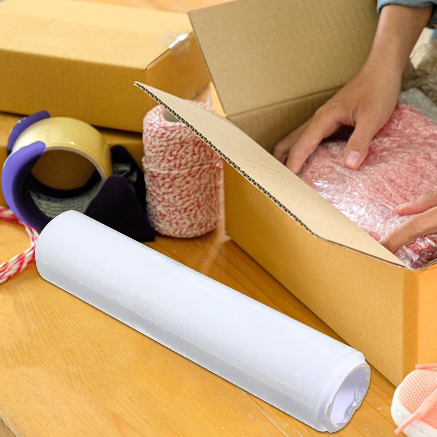 Package List 1 x packing film Features -Size:47.00X11.00X11.00cm/18.47X4.32X4.32in clear cling wrap -No Adhesive wrapping: features strong selfadhesive properties, eliminating the need for extra tapes or fasteners clear shipping tape -Crystal clear visibility: allows for easy identification of wrapped items, enhancing efficiency in storage and transportation plastic food wrap. -Color:Transparent clear industrial wrap -Protective barrier: shields your items from water, dust, and other environmental factors, maintaining their condition moving plastic Save time, money and east to apply: Pre stretched films are easy to apply giving you improved productivity, makes wrapping pallets easier and . There is no need to stretch the film to get maximum load holding as the film has been pre-stretched clear shipping wrap -Exceptional elasticity: delivers high stretch capacity, ensuring tight and secure wrapping that holds items firmly together clear stretch wrap film -Material:HDPE luggage plastic wrapGoods Descriptionplastic stretch film Discover the wrapping solution with our hand wrap film, designed meticulously for wrapping boxes, bundling essentials, and ensuring pallets are wrapped securely.clear shipping tape Our stretch wrap is easy to apply as the film is already pre-stretched so it requires less tension and can be used quickly and easily