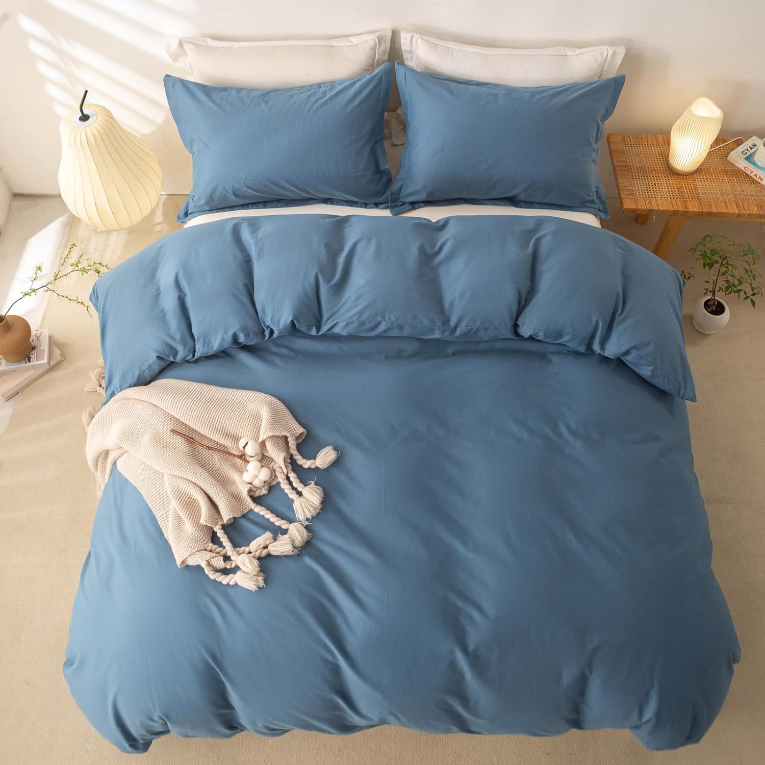 OAITE 100% Washed Cotton Duvet Cover King Size Soft Breathable Durable Bedding with Zipper Closure & 8 Corner Ties- 3 Pieces Plain Simple Duvet Cover Set,2 Pillow Shams,1 Duvet Cover(104"x90")
