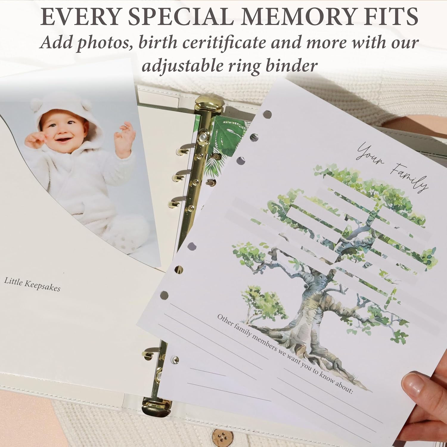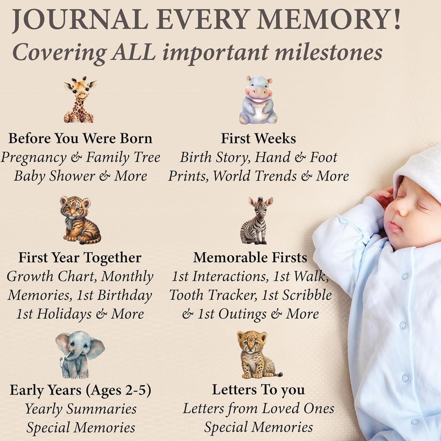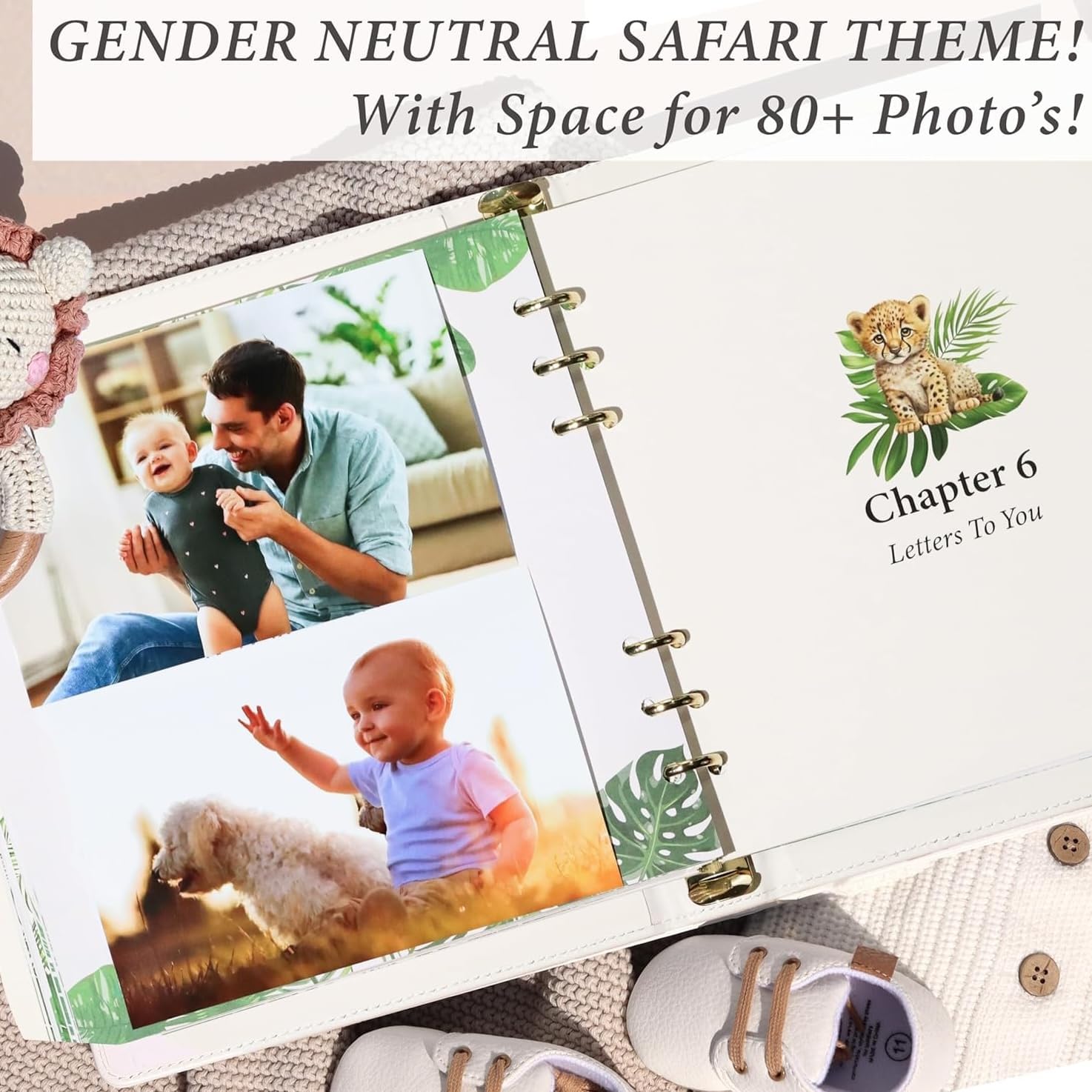 Personalized Baby Memory Book Keepsake for Boy or Girl - Enter any Name w/Gold Foil Stamp I First 5 Year I Faux Leather, Gender Neutral, Safari Theme - Baby First Year Book