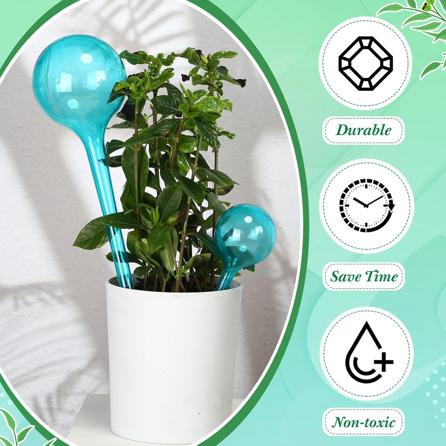 Features: Watering globes for indoor plants are nice for sending to your family members, neighbors, classmates, busy men and women, farmers, horticulturists and other plant culture enthusiasts, to show your kindness and care to them. Self watering globes for outdoor plants are lightweight, not easy to be broken by children and pets, so you can use them confidently. Specifications: Material: plastic Color: lake blue Size: 2 sizes, about 5.3 x 2 inches/ 13.5 x 5 cm, 10.6 x 3.1 inches/ 27 x 8 cm Package includes: 50 x Plant watering globes Notes: Manual measurement, please allow slight errors on size. The color may exist a slight difference due to different screen displays.