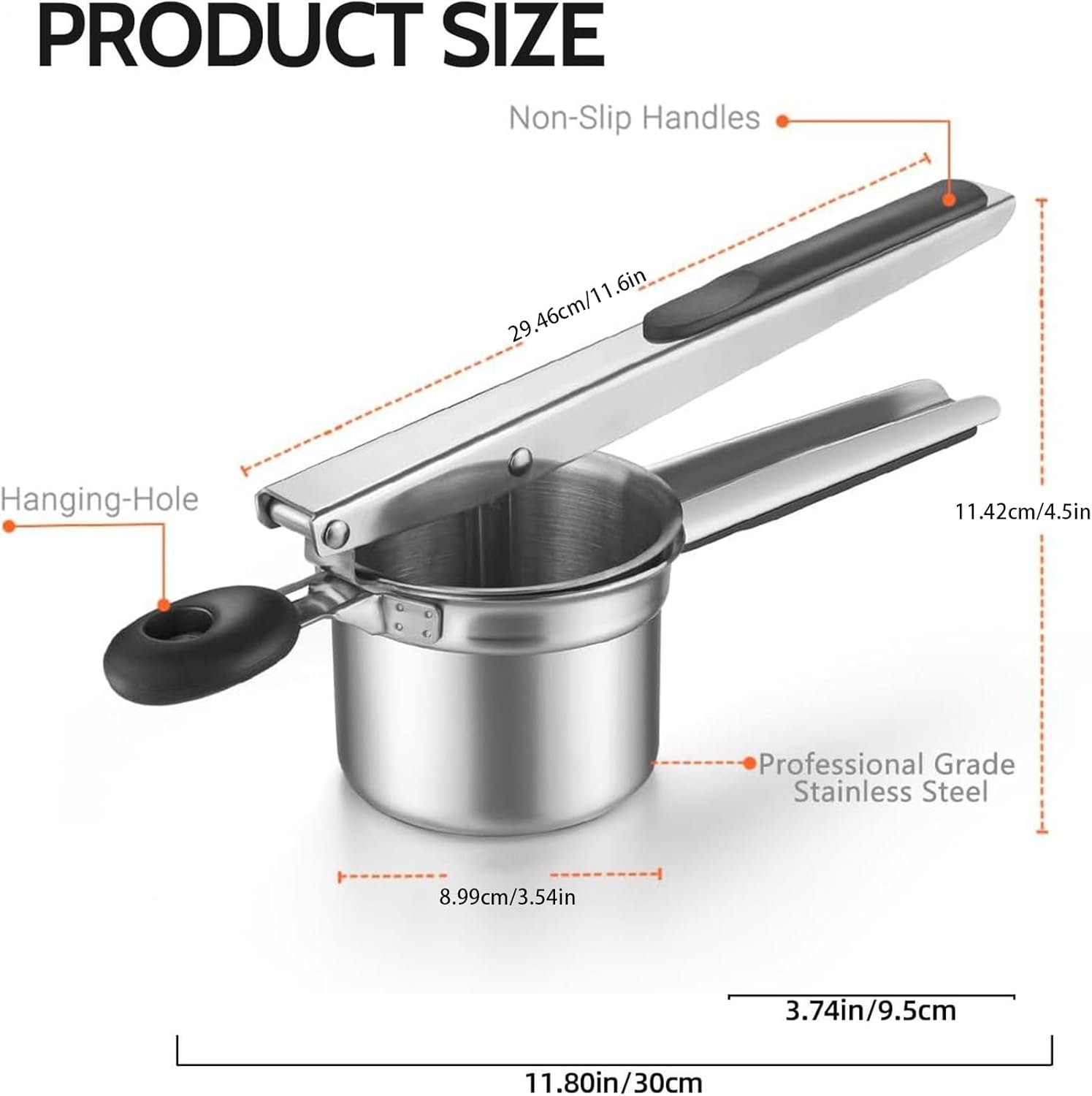 Product description The Thick Food Ricer is a key kitchen gadget designed to simplify cooking and dining experiences. This versatile tool functions as both a food press and masher, perfect for preparing a variety of dishes with ease. Use it to create smooth mashed potatoes, extract fresh juice from tomatoes, or mash avocados for guacamole.SpecificationProduct material: Stainless SteelProduct Size: diameter about 3.54 inches/8.99cm, height about 4.5 inches/11.43cm, handle length about 11.6 inches/29.46cmProduct weight: 595gProduct List:1* Potato RicerNote:Due to different lighting and screen settings, the item color may be slightly different from the picture.Due to different manual measurements, please allow a 1-2cm difference in size. Manufacturer Contact Information Refer to description