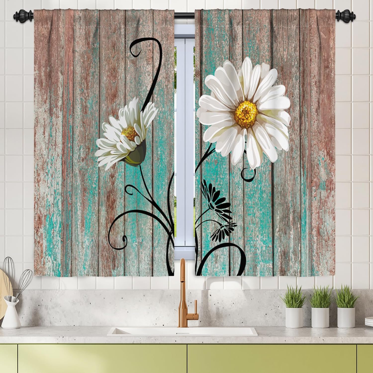 About UsRenaiss mainly deals with products such as curtain, table flag, pillow and other high-end home furnishings, is a collection of research, development, production and sales as one of the brand.Renaiss advocate the combination of design,craftsmanship,quality,aesthetics and practicality, design curtains with feeling, flavour and tone.bring you a "relaxed and free" lifestyle, take you to explore the diversity of life.With the persistent pursuit of taste of life,Renaiss digging deep into the design process of the potential value of art to provide customer with classy curtains.Worth Choosing♥Our linen curtain made of high quality polyester,wear-resistant and with a good vertical feel,ideal choice for your home window.♥Our short curtain can keep privacy protection,with high performance in light filtering, thermal insulation and noise reduction.♥Our rod pocket curtain also designed with back tab and hook belt,3 hanging options♥Our window curtain tiers design by high-tech craftsmanship,bright color and durable, will not fade for longtime to use.♥Home decor multiple uses,can be used for living room curtain, farmhouse curtain,kids bedroom curtain,dining room curtain,basement window curtain,etc♥Complements a variety of room styles,you can choose different pattern curtain according to your home style,such as casual curtain, country curtain, modern curtain or vintage curtain as you like.Customer ConcernsQ:How many pieces in a package? Are the panels 52"W per panel or do they measure 52"W together?A:2 panels in a package,each Panel measures 52"W, so 104"W total.Q:Does the curtain tiers have wrinkles?A:Few of the them will have wrinkles due to packing squeeze during shipping. You can remove it with low-temperature ironing.Q:Are the curtain colors same as the website?A:There are slight difference due to different display devices, screen brightness, or light brightness.