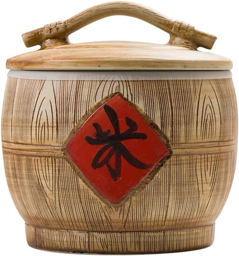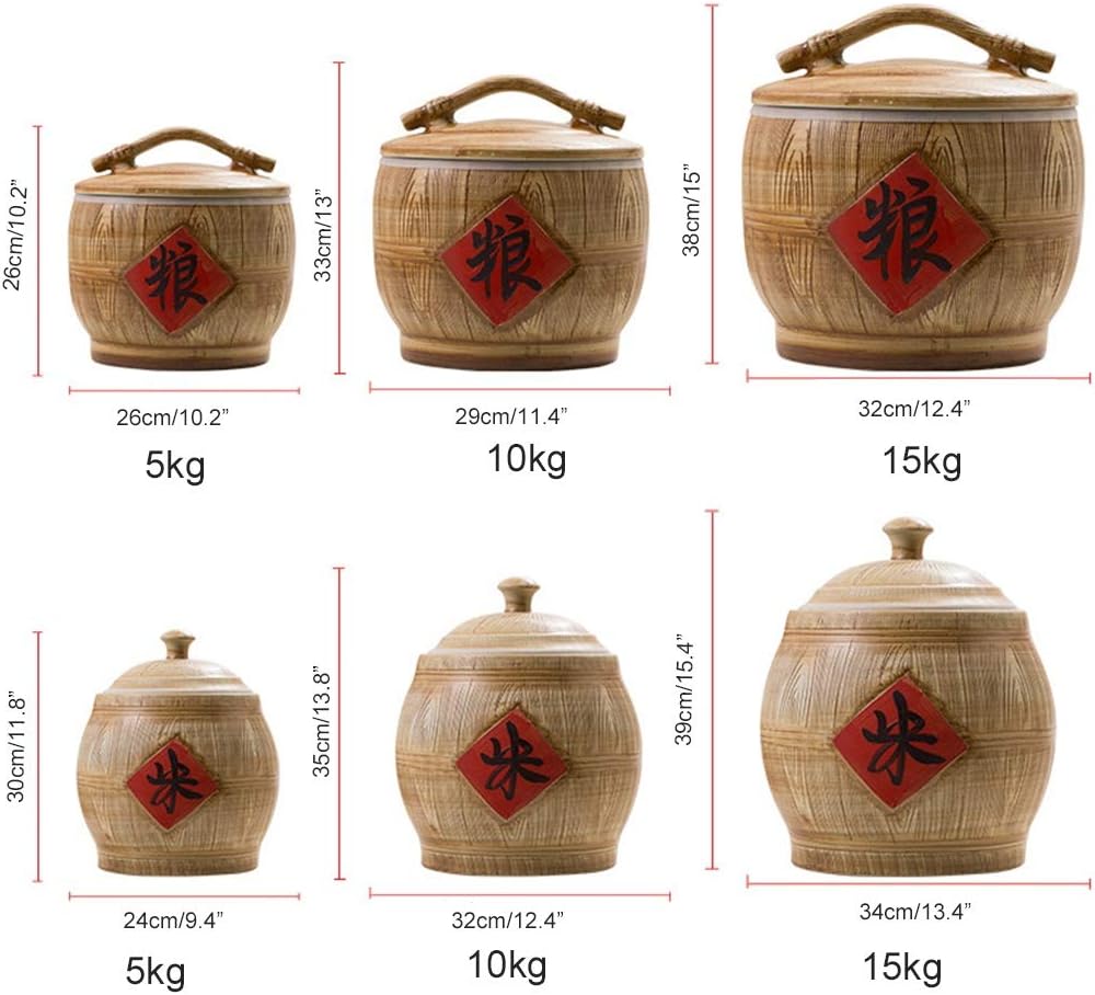 ★ Why Choose us:- Safe and durable ceramic material- Overglaze craft, never lose color- 100% handcraft, high quanlity- Airtight lid with silicone seal to keep the cereal aways fresh.- Keep clean and organized kitchen.- Storage for flour, rice, nuts, beans, snack, coffee, cereal, tea leaf, pet food storage etc.- High quality service★ Specifications:Material: porcelain Style: Tranditional Chinese styleColor: BrownCapacity: 5kg/11lb, 10kg/22lb, 15kg/33lb. Types: A,B,C,D as pictures