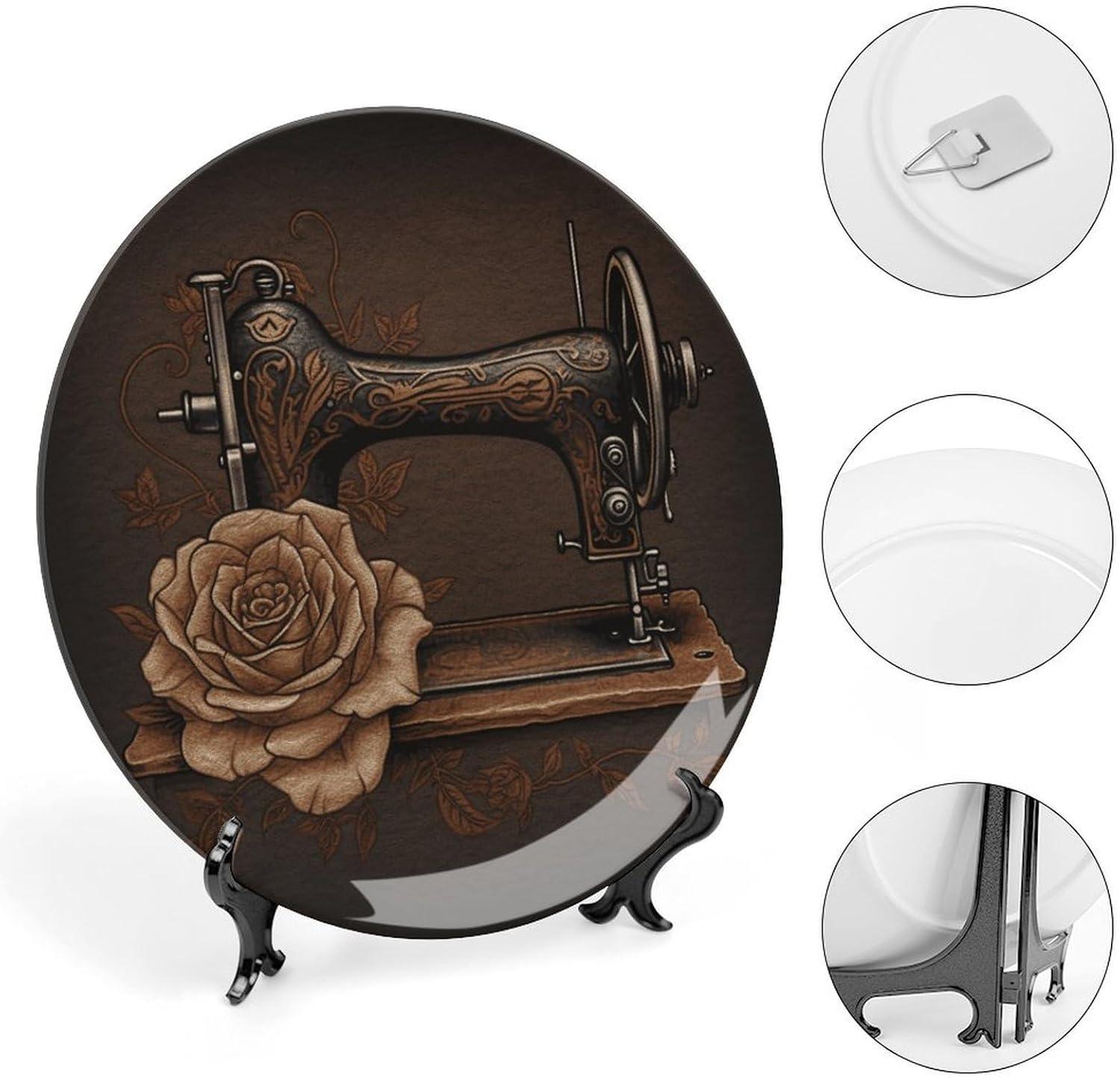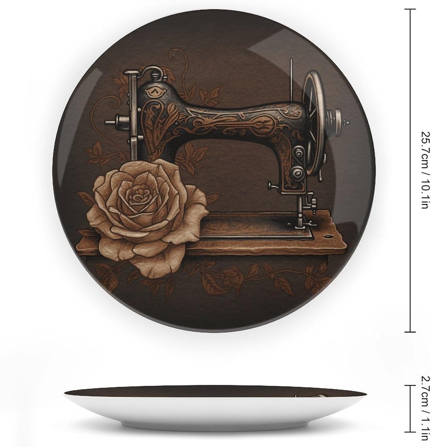 High Quality Material: Made from high-quality ceramic, this plate is not only visually stunning but strong enough for everyday use. Its smooth surface ensures easy maintenance and long-lasting appeal.Appeal: This Rose And Sewing Machine bone china plate has a traditional design and is a statement piece. It's a great addition to your dinnerware collection or a beautiful addition to your home.The ceramic plate can be placed three-dimensionally with its base on the table or hung.The diy patterns are vibrant and suitable for most office or home decor, living rooms, tables, kitchens, shelves, dinner parties, housewarmings, vacations, weddings, restaurants, florists, spas and other special occasions. It comes with a display stand and is sturdy, versatile, stylish and safe for everyone to use. Quality plates stand out and give their owners confidence and aesthetic taste.