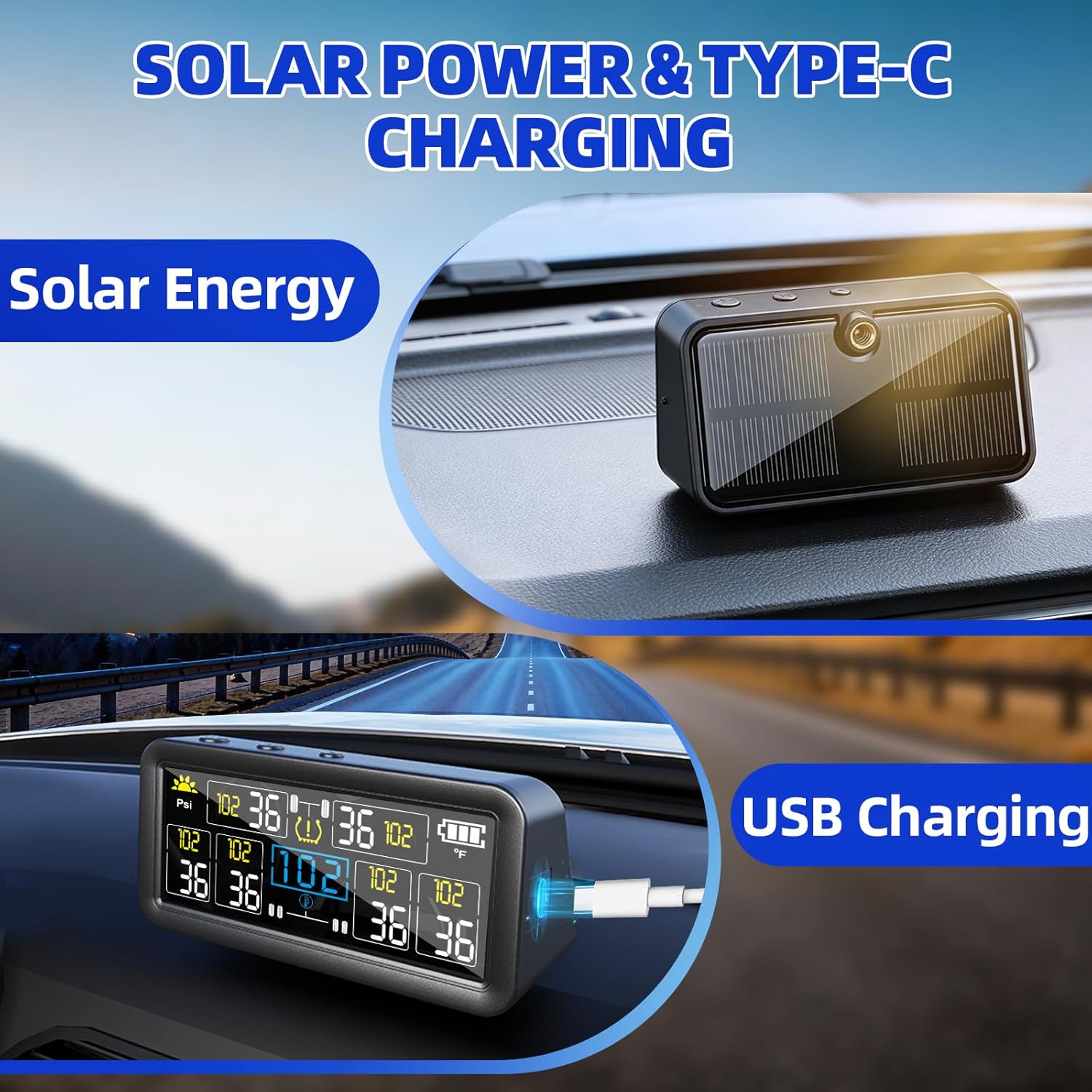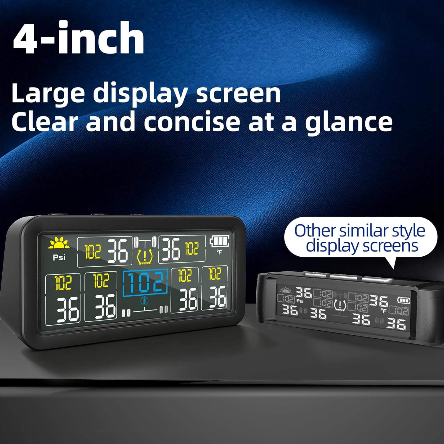 RV TPMS is a professional-grade, real-time tire pressure and temperature monitoring system designed for sedans, trucks, trailers, and RVs. Featuring four high-precision wireless sensors and a large 4-inch LCD display, it works around the clock to keep you and your vehicle safe. So you can drive with confidence and save on gas.