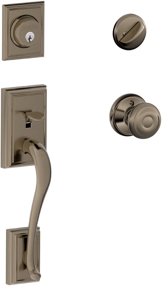 This Schlage handleset features a decorative deadbolt, matching exterior handleset grip and interior passage door knob or lever. Offering premium construction combined with a sleek design and industry-leading warranty, this is the perfect door handleset for your customized entryway. Trust your home to Schlage, makers of high-quality, innovative door hardware for over 100 years.