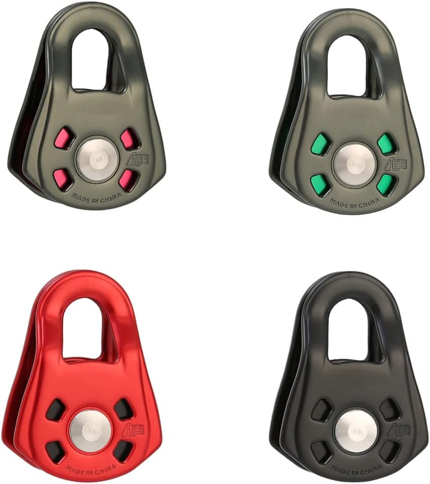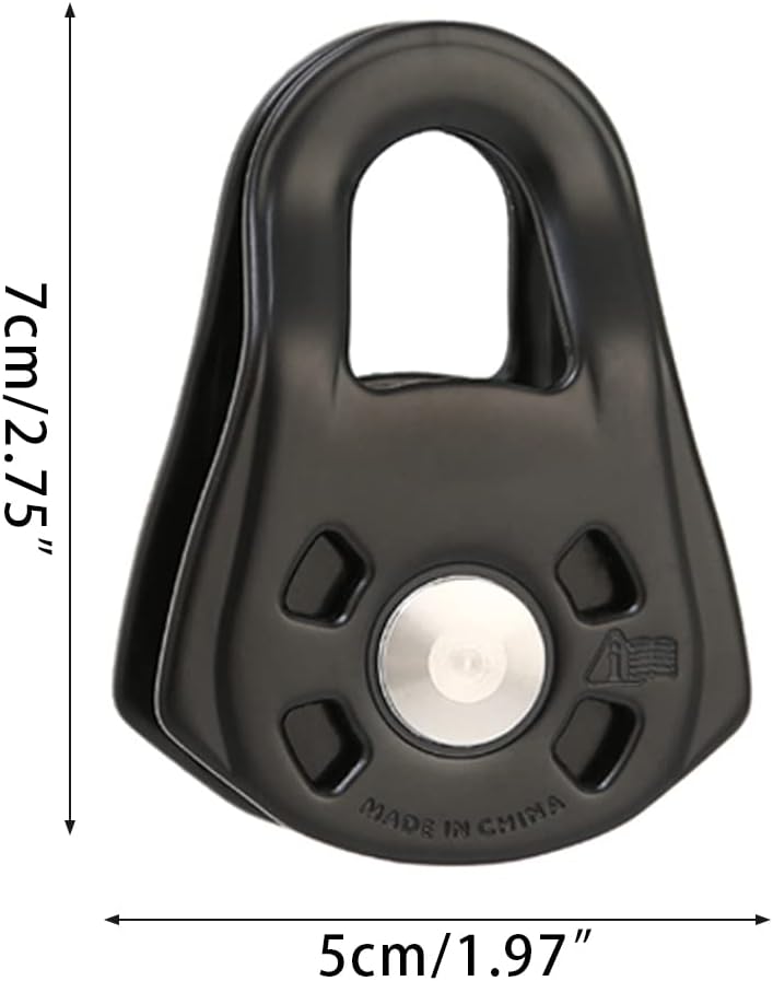 Small Single Pulley Gear Bearing Mountaineering Rock Climbing Zipline Traverse-solving Carriage Pulley and Features Concave pulley, better fitting rope, polishing, with internal bearing, let you experience different smoothness hard anodizing (different from ordinary anodizing), hard anodizing is characterized by full coloring, oxidation for film thickness of 30um, far more than ordinary anode of 10um, more better sealing to aluminum, extending product life.Laserengraving is used for product parameters and working load, which is and easy to identify.This pulley is constructed with premium aluminium alloy, anti-rust, high strength and Heavy duty, it can withstand about 23KN pull strength, the side plates can rope from skidding, keep in climbing.Suitable for rope with diameter 7-11mm for climbing, also excels great in other uses like hauling, transporting, Single Pulley only,other accessories in the picture is not included Specification Aluminum AlloySize: app.7x5cm/2.75x1.97inOptional Color: Black, Red Pulley, Green Pulley, RedQuantity: 1 PcNote:No retail package.Please allow 0-1cm error due to manual measurement. pls make sure you do not mind before you bid.Due to the difference between different monitors, the picture may not reflect the actual color of the item. Thank you!Package Contents:1 x Single Pulley