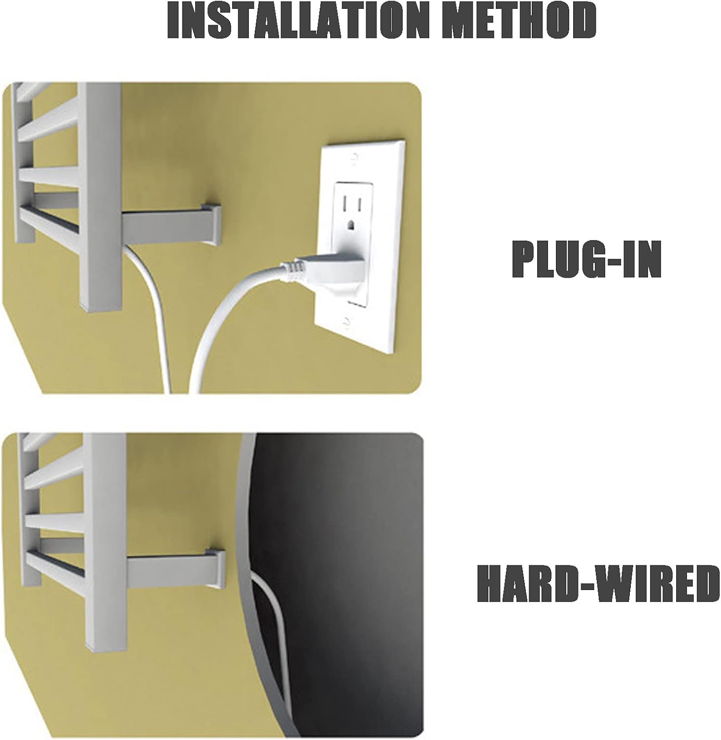 Introducing our premium Wall-Mounted Heated Towel Rack, designed with modern aesthetics and functionality in mind. Crafted from high-quality 304 stainless steel, this towel warmer not only enhances your bathroom decor but also provides a luxurious experience every time you step out of the shower. With a sleek configuration of four straight round bars, this towel rack efficiently distributes heat, ensuring your towels are warm and cozy in just 5 to 10 minutes. Operating at a power of 48W, it offers adjustable temperatures around 45°C, allowing you to customize your comfort. The built-in timer feature adds convenience, making it easy to set and forget. Ideal for both residential and commercial use, our heated towel rack transforms your bathing routine into a spa-like experience. Imagine wrapping yourself in a warm towel after a relaxing bath or shower, elevating your everyday moments into something special. Installation is straightforward with options for hard-wiring or plug-in, although we recommend professional installation for hard-wiring to ensure safety. Available in elegant polished and black finishes, this towel warmer seamlessly complements various bathroom styles. Before purchasing, please verify the dimensions (450*540*120mm) to ensure it fits your space perfectly. Note that variations in lighting and screen displays may result in slight differences from the actual product. Enhance your home with the perfect blend of style and comfort—experience the difference with our heated towel rack today!