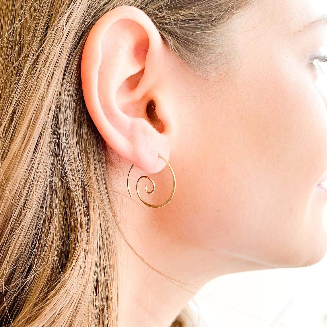These Spiral Hoop Earrings feature genuine 14K Gold Filled with a unique continuous design that is so lightweight and comfortable you won't even know you are wearing them. LISTING INCLUDES - A pair (two) spiral hoop earrings - Genuine 14K Gold Filled - Comes in a gift ready pillow box ___________________________________________________ FEATURES -22mm - 20 gauge wire - Hypoallergenic and tarnish resistant - Lightweight and comfortable ____________________________________________________ CARE INSTRUCTIONS - 14K gold filled may tarnish over time - To prevent tarnish, store your jewelry in an airtight bag or container when not wearing - Polishing cloths work the best to get rid of tarnish - You can also try Tarn X or making a paste out of water and baking soda and gently wash with a soft cloth, toothbrush, or steel wool