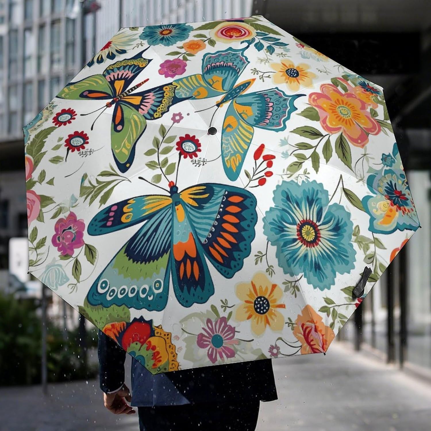 Large Windproof Umbrella with Blackout Lining – Stylish, Compact, and Ready for Any Weather Durable Frame & Reliable Build The frame combines steel ribs with fiberglass components, creating a balanced structure that is both flexible and strong. Engineered with a focus on stability, the 8-rib support system helps the umbrella withstand breezy conditions, making it a dependable choice for outdoor use. The automatic open mechanism allows for quick and effortless deployment, adding convenience to your daily routine. Stylish Design with Inner Black Coating Featuring a black inner layer and an outer printed pattern, this umbrella presents a modern look in a range of vibrant colors. The inner coating helps reduce sunlight exposure, while the outer design showcases your personal style. Water-Resistant Canopy When opened, raindrops roll off the surface smoothly. After use, a gentle shake is enough to remove water droplets quickly. The fabric offers water-repellent properties similar to a lotus leaf effect, helping to keep the inside dry. Thoughtful Accessories Each umbrella comes with a matching printed umbrella sleeve for neat storage and added protection when not in use. Compact enough to fit in a bag or case, yet large enough to provide ample shade and shelter, this umbrella large is perfect for travel, shopping, commuting, and other outdoor activities. Mechanism: Automatic open for fast, convenient use. Canopy: Inner black coating, outer printed design, water-repellent finish. Care Tips: Allow to air dry fully before folding and storing in the sleeve. Avoid prolonged exposure to heavy rain or high winds beyond normal conditions. Ideal For: Anyone looking for a windproof umbrella that offers reliable coverage, a stylish appearance, and easy portability in a umbrella large format.