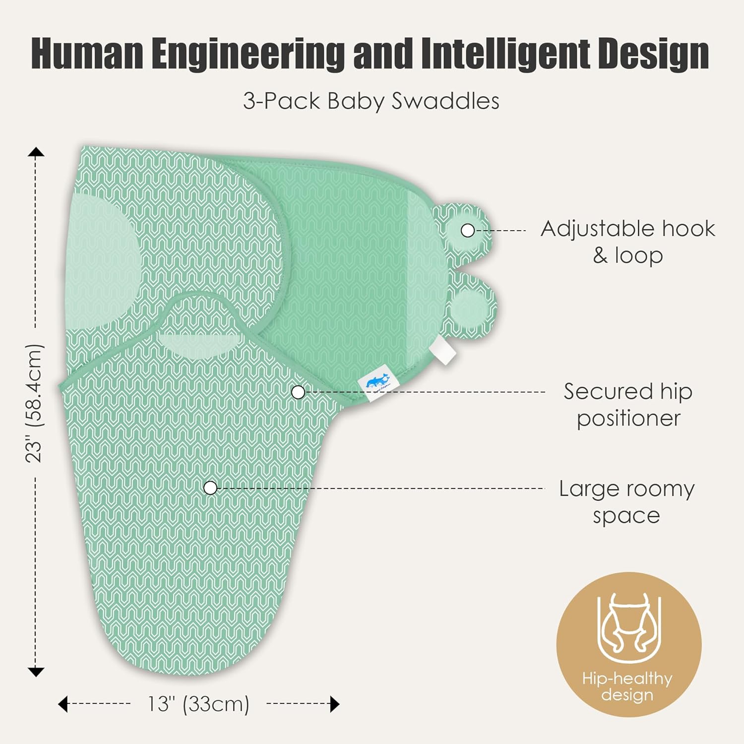 SWEET DOLPHIN 3 Pack Baby Swaddle Sleep Sacks, 0-6 Months, Green