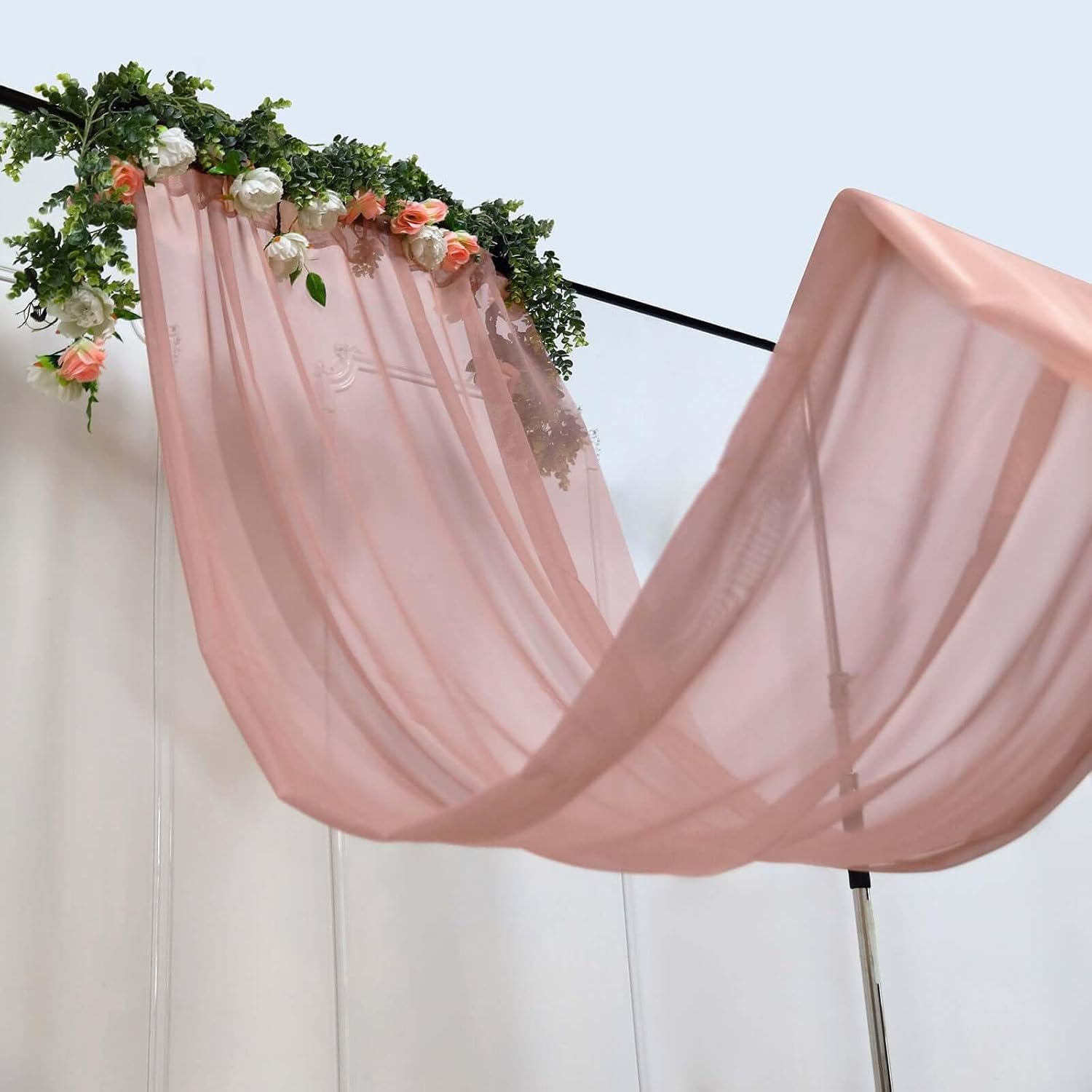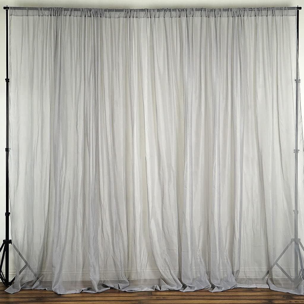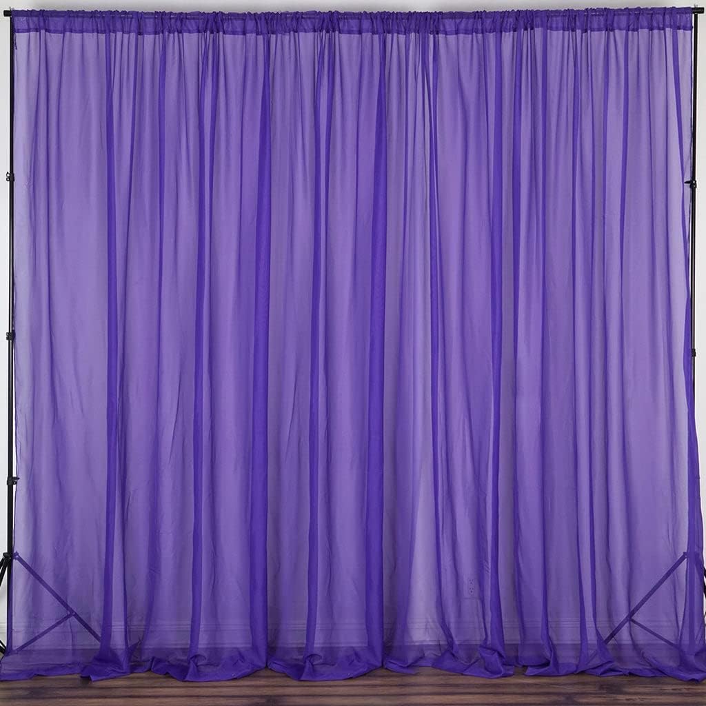 Chiffon Curtain PanelAdd a dash of elegance and style to your home interior, wedding, birthday, or party backgrounds. Pair these with our printed or sequined curtains to create an imperial display, or use these on their own for a touch of graceful simplicity. Easy to install rod pockets let you hang these chic drapes anywhere effortlessly and in flexible opening and closing of the panel. Choose the color to blend naturally with your events theme or home interior, augmenting your living room and bedroom windows or French and Sliding Patio doors.Backdrop Ceiling DraperyCrafted from premium quality translucent chiffon, these backdrops curtain panels will ooze sophistication with sublime grace. Our stylish chiffon curtain panels are a stylish way to maintain privacy while infusing any room with natural sunlight. Keep your homes bright and sunny without worrying about visibility from outside, as our deluxe chiffon curtains are transparent enough to let fresh air and sunlight through, yet thick enough to provide unparalleled privacy.Ceiling Drapery With Rod PocketHang these classy curtain panels from any standard size curtain rod or backdrop stand and see how the flawless sheerness of chiffon material coupled with lush cascading layers add an ethereal touch of elegance to your home or party space. Pair this fab piece with other chiffon tablecloths, table linens, table skirts, polyester napkins, polyester chair sashes, polyester aisle runners and other matching decorations. Add balloons, pennants, fringes, acrylic crystal chains, greenery and flower garlands, lanterns, and other décor pieces for a touch of glam!Additional Information:Not Fire Retardant treatedSale is for backdrop only, other accessories are sold separatelyUses: Wedding Venues, Tents, Banquet Halls, Corporate Events, Restaurants, Graduations, Quinceaneras, Birthdays, and Bridal Showers