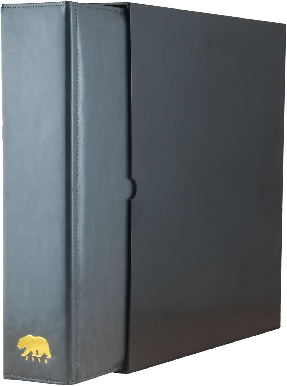 The Ursae Minoris Estate Library Deluxe 4 Q-Ring Large Format Binder is the ultimate storage solution for collectors, designed to keep coins, stamps, currency, bank notes, documents, and other collectibles organized and protected. Crafted with a sophisticated padded leatherette cover, this premium binder exudes elegance and durability. Reinforced panels ensure added strength and longevity, safeguarding your valuable collections. The binder includes a black slipcase that provides an additional layer of protection and a sleek look, making it a stylish addition to any shelf or display. The 4 Q-Ring mechanism offers a secure and easy way to add or remove pages, accommodating a variety of Large-sized inserts. This versatile binder is ideal for storing a wide range of collectibles, and since the pages are sold separately, you can customize it to your specific needs with inserts that suit your collection type. The Ursae Minoris Estate Library Deluxe 4 Q-Ring Large Format Binder keeps your collectibles neatly organized and well-protected from dust, damage, and environmental factors. Its elegant and professional look enhances the presentation of your collection. This binder is designed in a large format to fit even the largest page types as well as most standard pages, and the slipcase is designed to snugly fit the binder, offering comprehensive protection. Upgrade your collection's storage with the Ursae Minoris Estate Library Deluxe 4 Q-Ring Large Format Binder, combining luxury, functionality, and style for the discerning collector.
