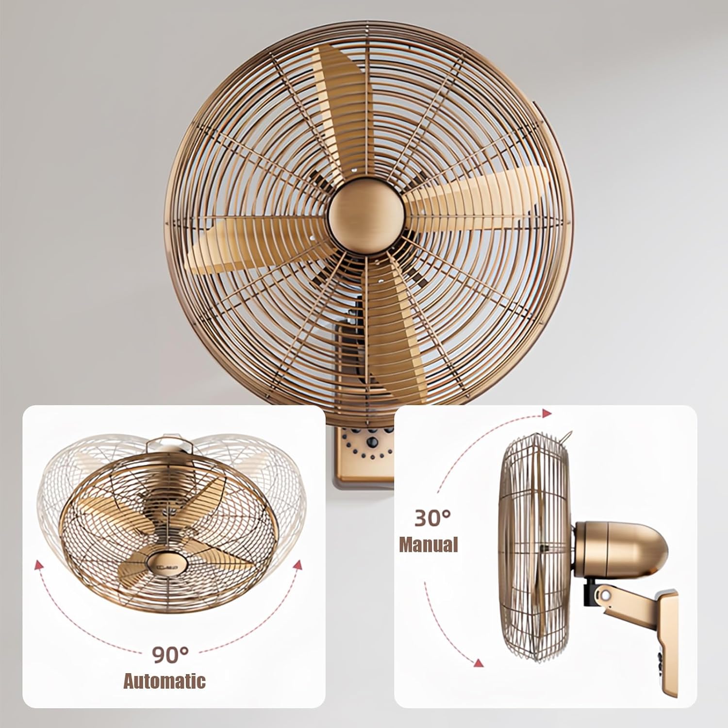 Use the remote to easily adjust fan speed (Low/Med/High), switch between modes (Natural/Sleep/Breeze), and set a timer (0.5-7.5 hours) from up to 5 meters away.**Perfect For**:- Keeping your open-plan living room cool without the clutter of floor fans.- Ensuring a comfortable atmosphere in café patio areas for your customers.**Technical Specifications**- Dimensions: 16/18 blade diameter- Weight: 5.1 kg**What’s Included?**1× Wall Fan 1× Remote Control 1× Heavy-Duty Mounting Kit Upgrade your cooling experience today with our Vintage Wall-Mounted Fan and enjoy the perfect blend of style, efficiency, and convenience.