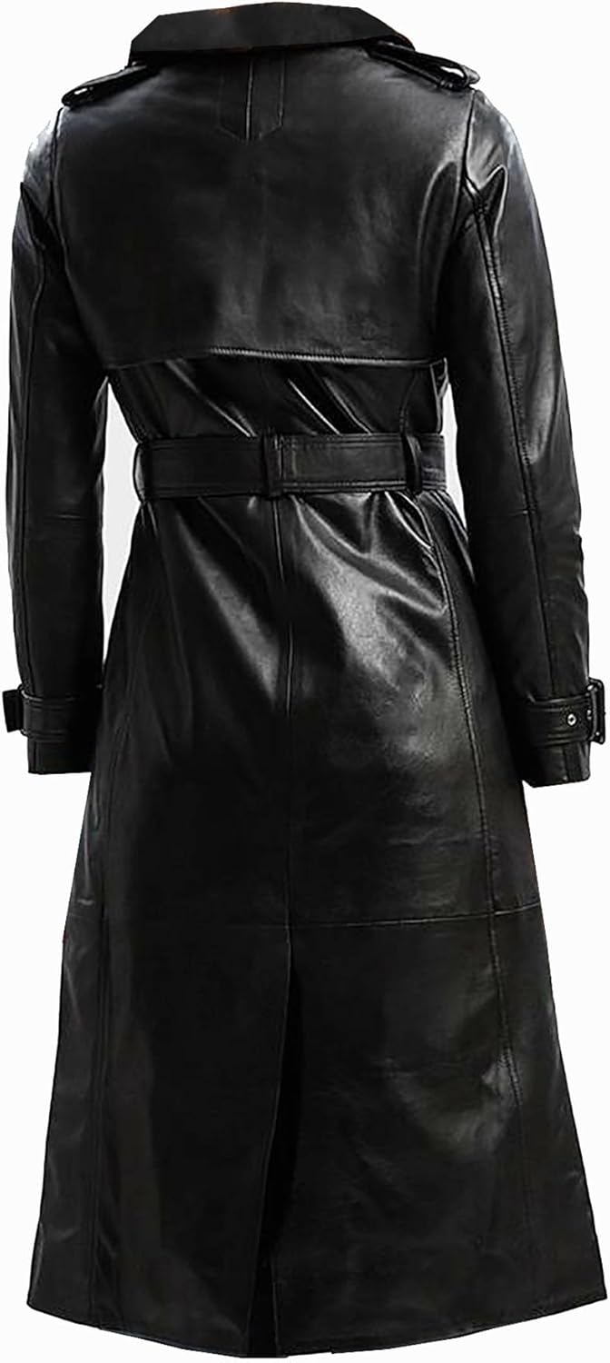 Upgrade your winter wardrobe with this Women’s Black Leather Trench Coat, designed to combine elegance, warmth, and confidence. The long-length trench style creates a powerful and fashionable silhouette, making it a standout piece for any season. This coat features a double-breasted front with a wide lapel collar, delivering a classic and sophisticated look. The adjustable waist belt allows you to customize the fit, giving you a flattering shape while maintaining comfort. Long sleeves with buckle cuffs add a stylish and functional touch. Ideal for everyday wear or special occasions, this leather trench coat pairs effortlessly with jeans, dresses, boots, or heels. Whether you’re heading to work, traveling, or stepping out on a chilly evening, this coat offers both style and protection. A must-have outerwear essential for women who appreciate timeless fashion and modern elegance.